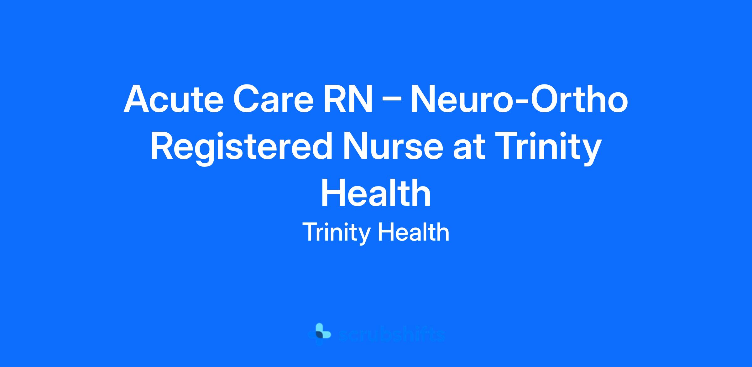 Acute Care RN – Neuro-Ortho Registered Nurse at Trinity Health