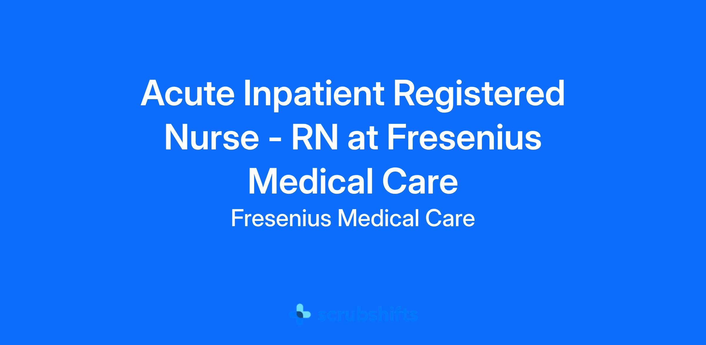 đź”— Apply Direct: https://jobs.freseniusmedicalcare.com/acute-inpatient-registered-nurse-rn/job/09CD5A336039A1CCBCB43C9AB683CE81
