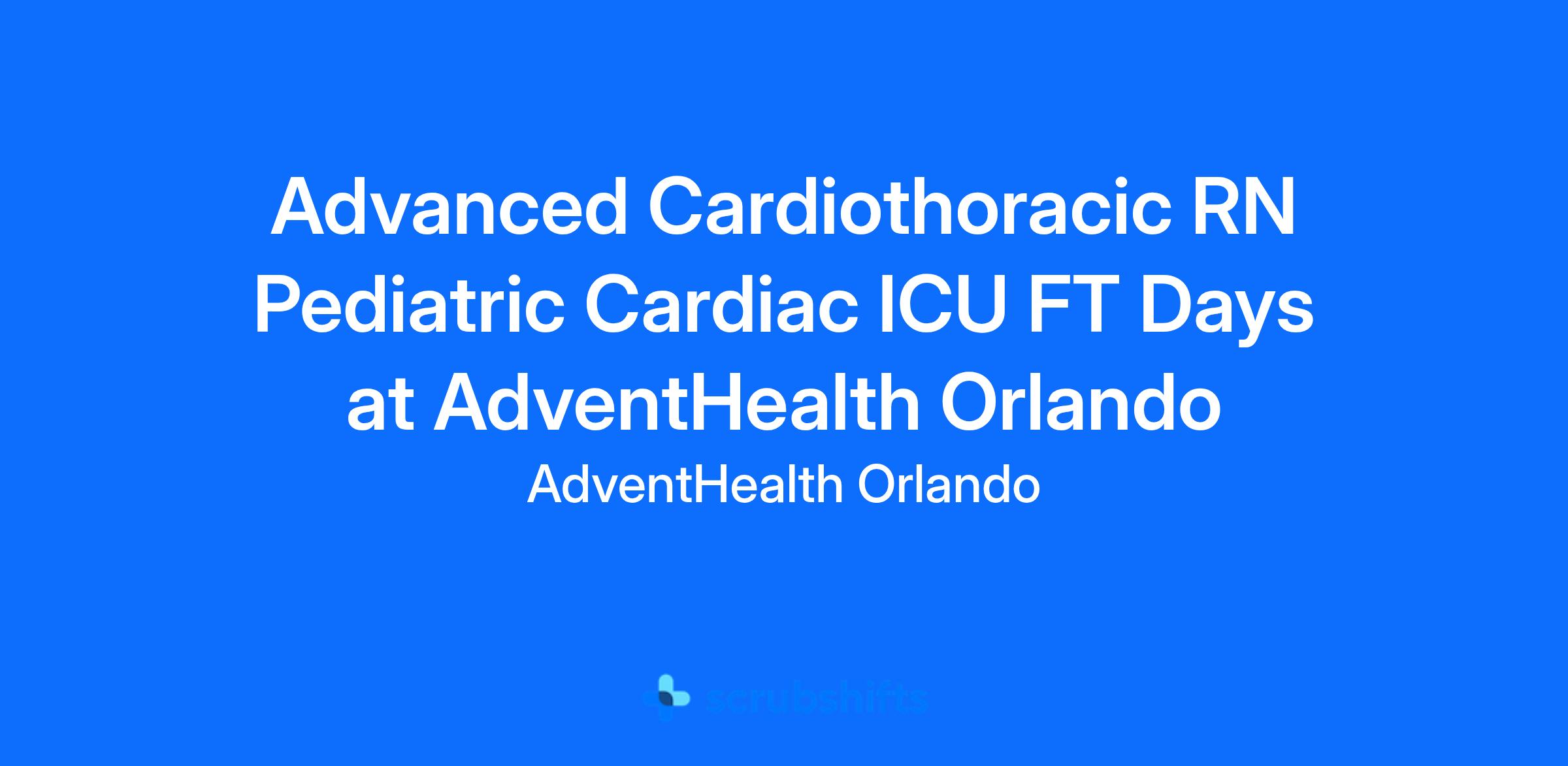 Advanced Cardiothoracic RN Pediatric Cardiac ICU FT Days at AdventHealth Orlando