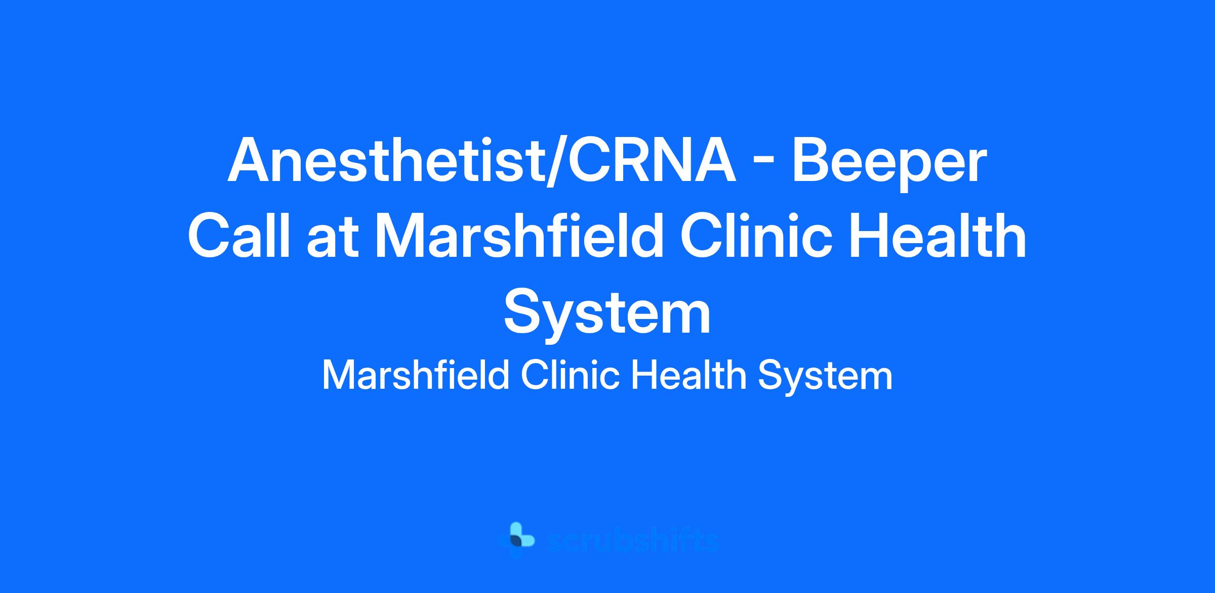 Marshfield Medical Center \\- Beaver Dam is looking for a CRNA\\-Beeper Call to join a new Anesthesia team. 1,720 hours per year, $175 per hour for any additional hours worked.