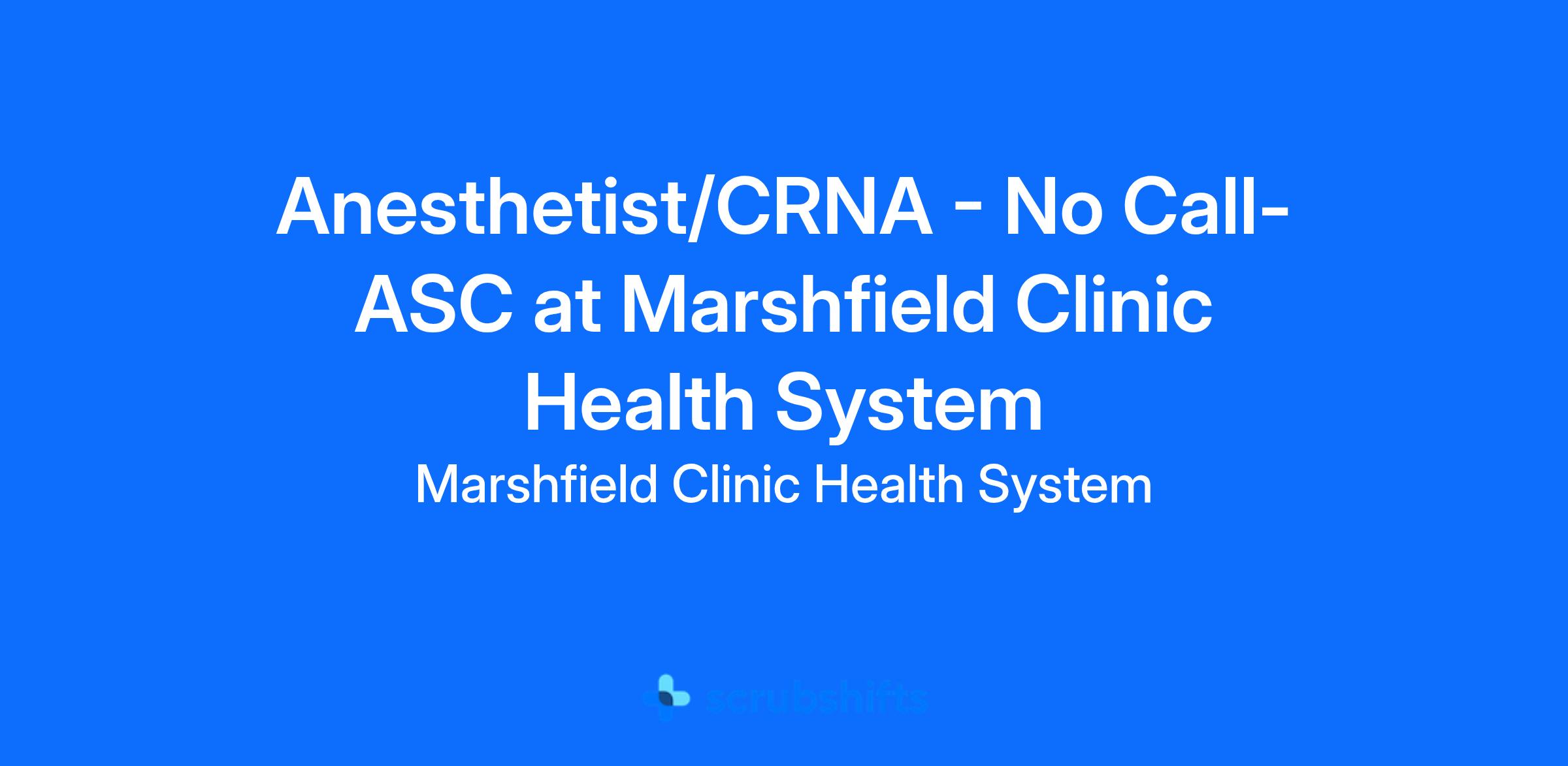 ๐ Apply Direct: https://marshfieldclinichealthsystems.wd5.myworkdayjobs.com/en-US/Physician/job/Marshfield-WI/Anesthetist-CRNA---No-Call--ASC_R-0036677-2