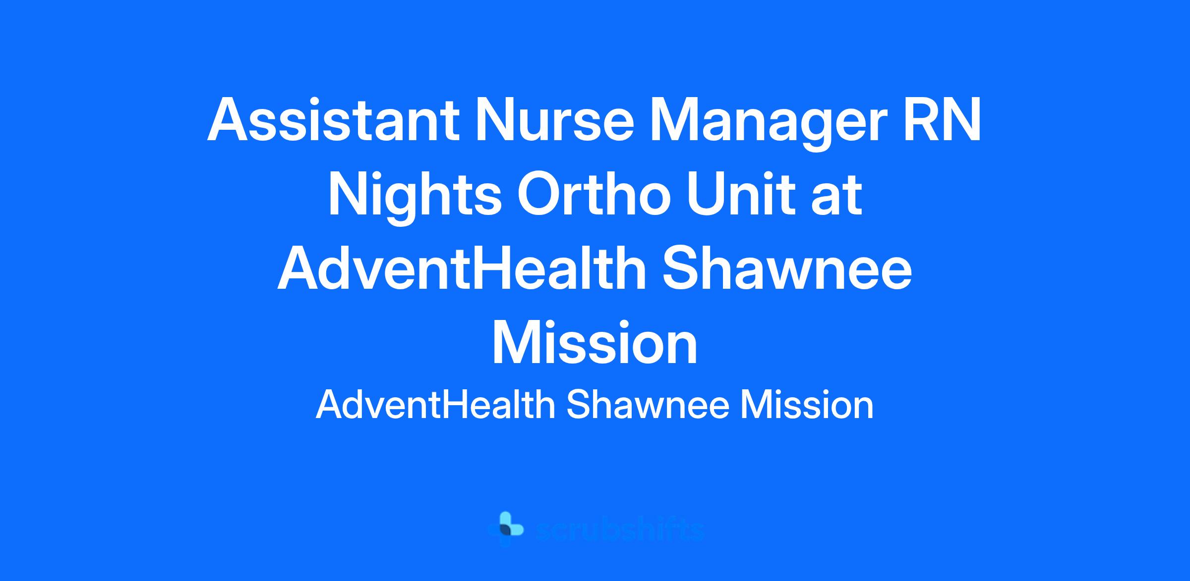 š Description: **Assistant Nurse Manager** **AdventHealth Shawnee Mission**