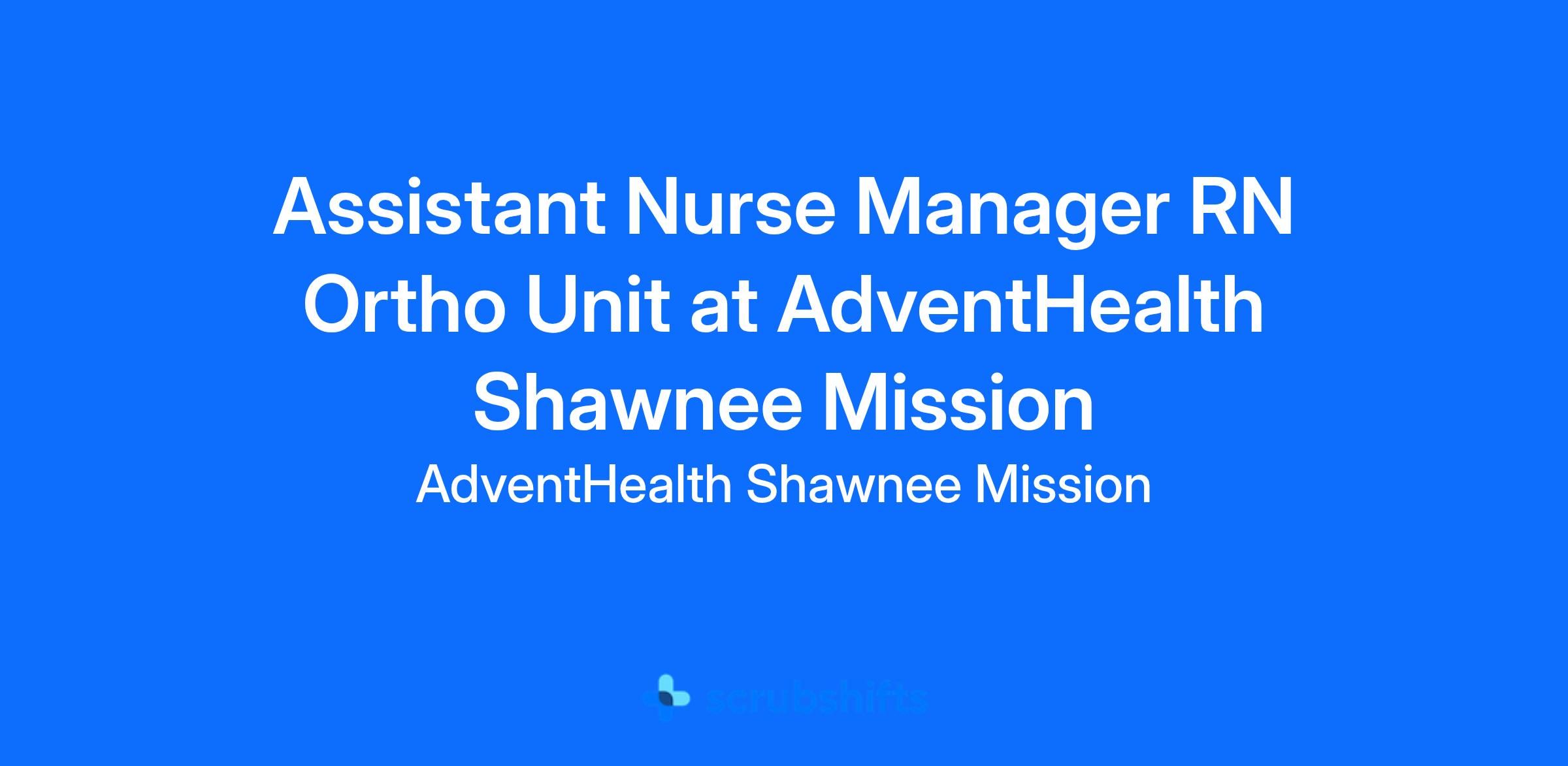 š Description: **Assistant Nurse Manager** **AdventHealth Shawnee Mission**