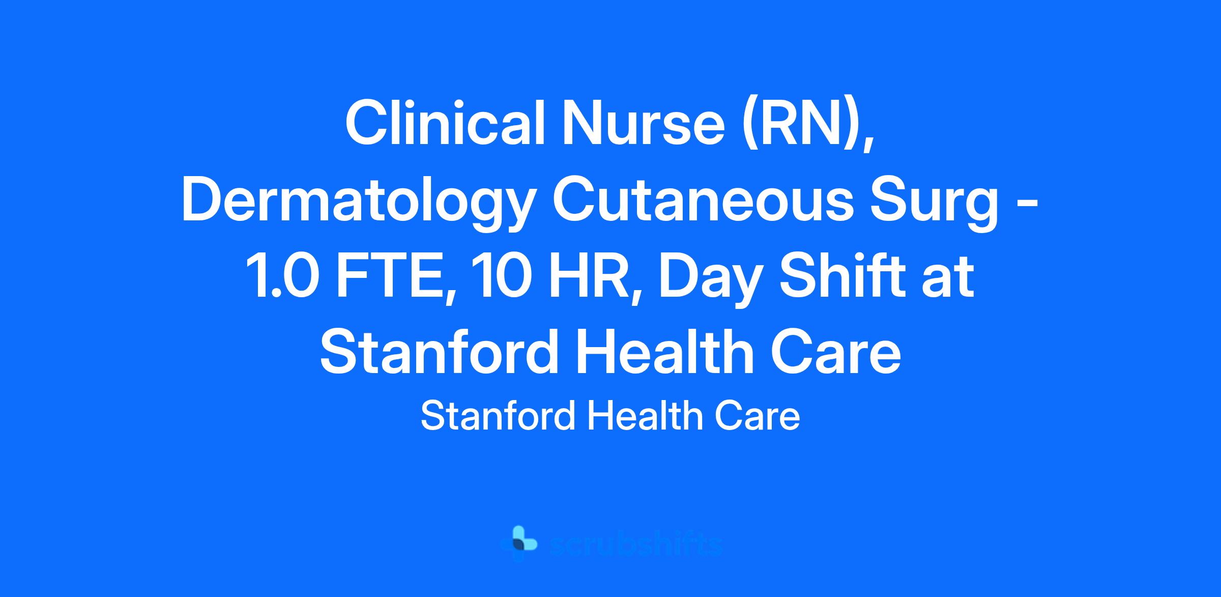 Clinical Nurse (RN), Dermatology Cutaneous Surg - 1.0 FTE, 10 HR, Day Shift at Stanford Health Care