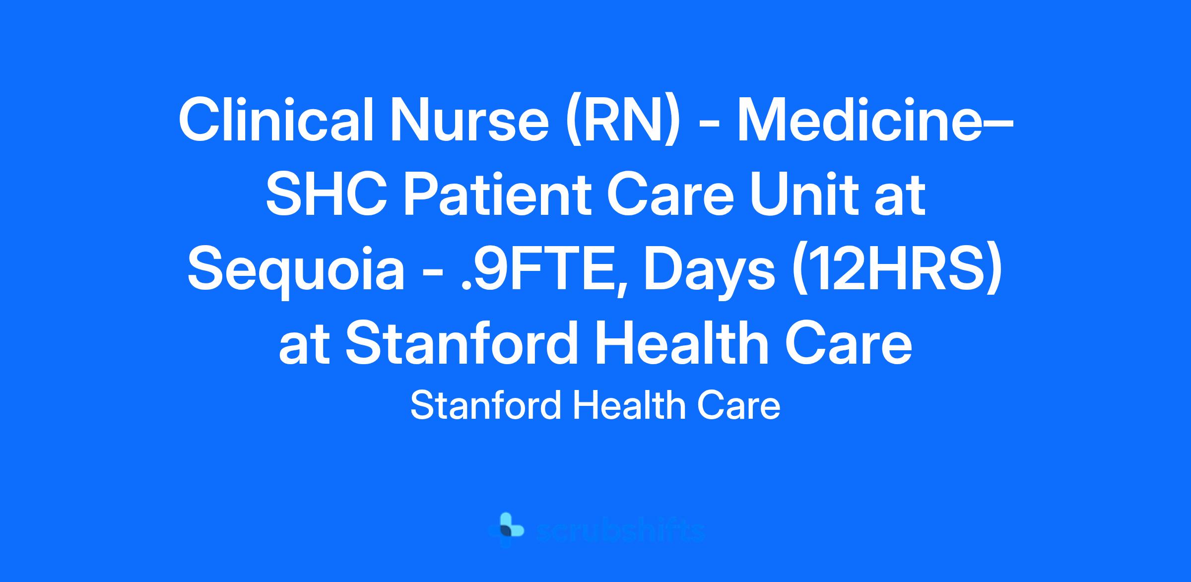 Clinical Nurse (RN) - Medicine– SHC Patient Care Unit at Sequoia - .9FTE, Days (12HRS) at Stanford Health Care