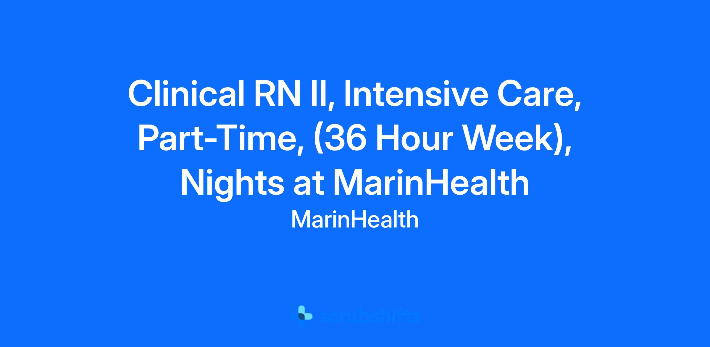 Clinical RN II, Intensive Care, Part-Time, (36 Hour Week), Nights at MarinHealth