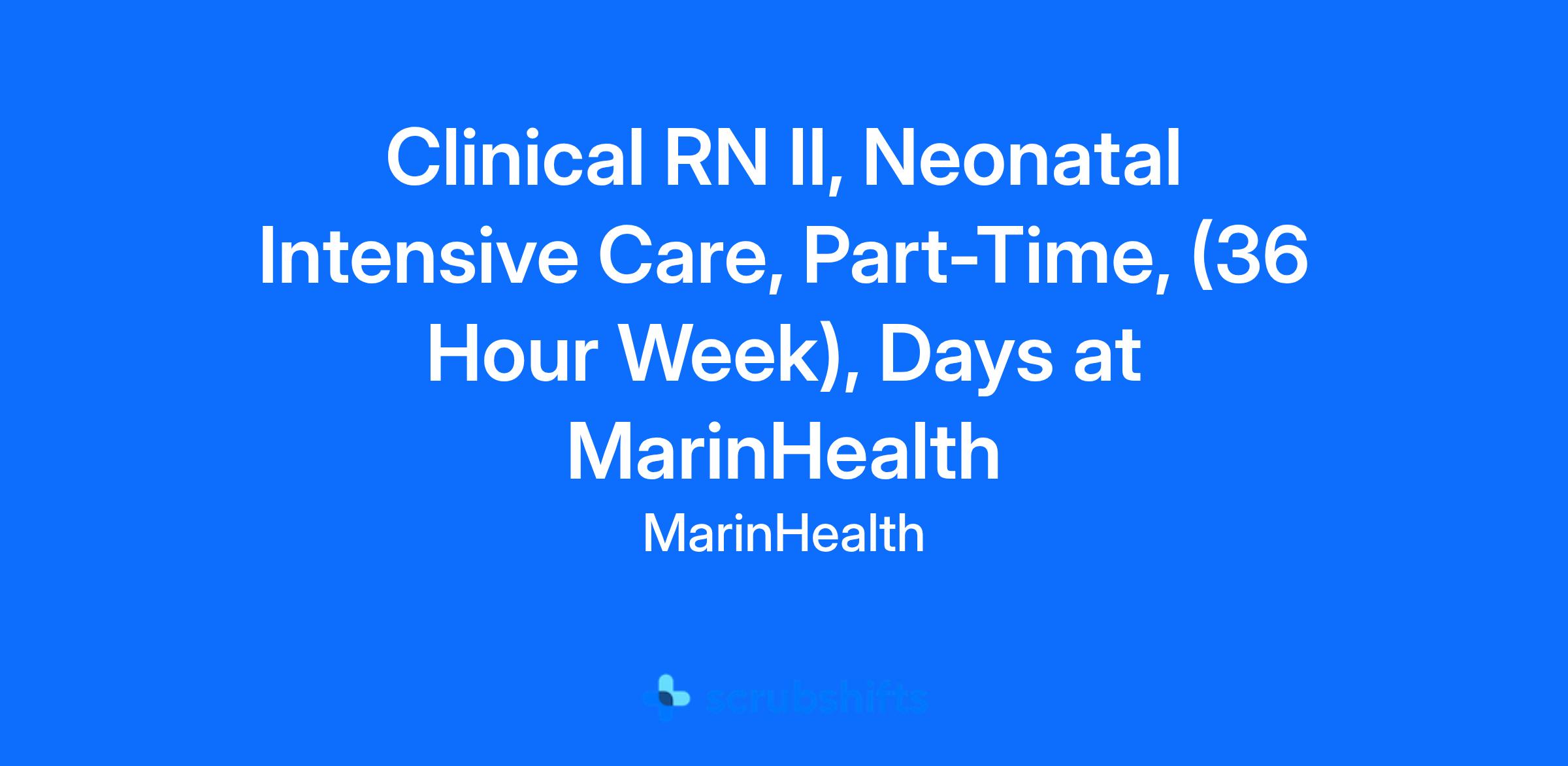 🔗 Apply Direct: https://mymarinhealth.wd5.myworkdayjobs.com/en-US/MHCareers/job/Greenbrae-CA/Clinical-RN-II--Neonatal-Intensive-Care--Part-Time---36-Hour-Week---Days_JR101418