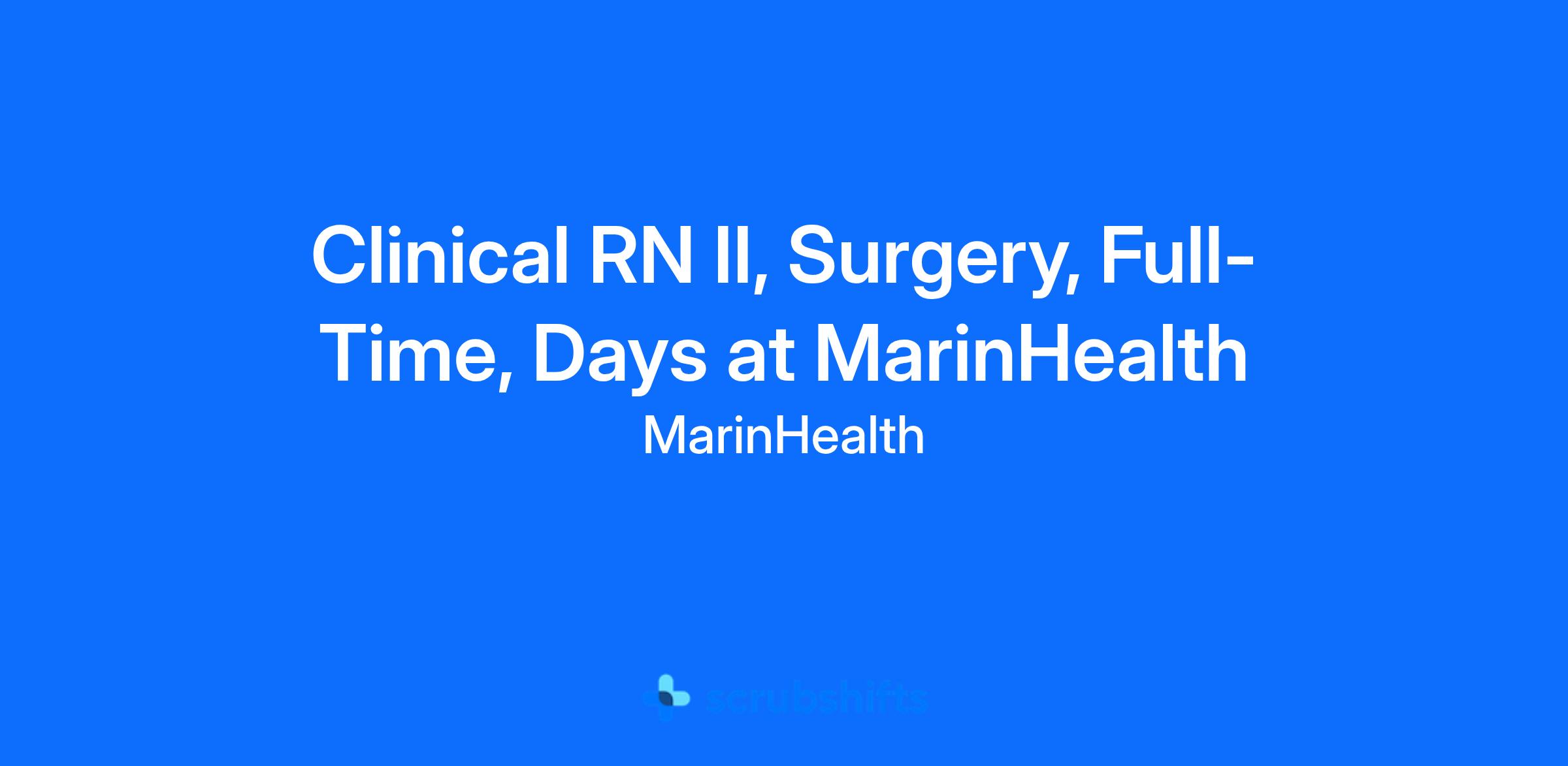 Clinical RN II, Surgery, Full-Time, Days at MarinHealth