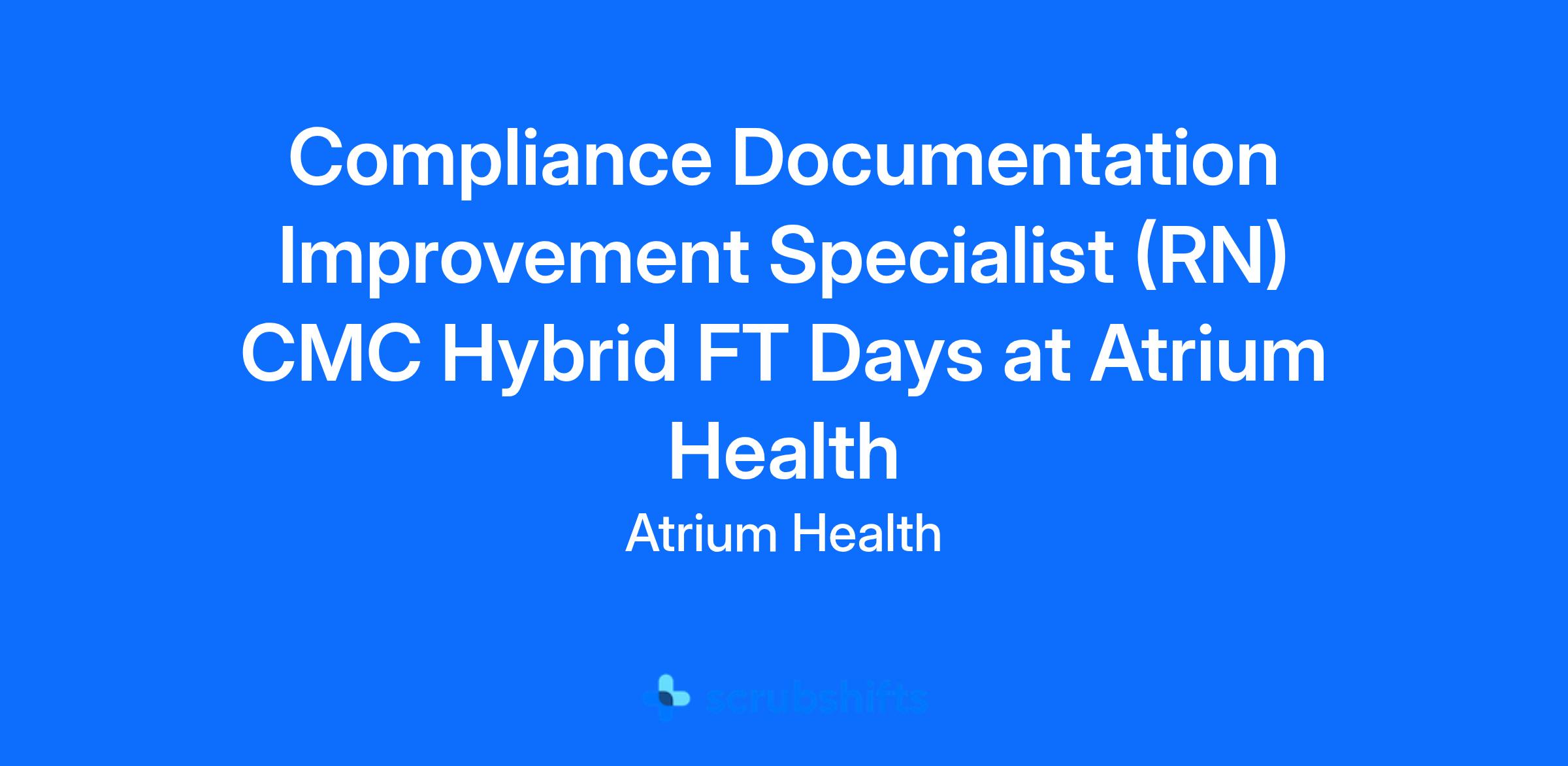 Compliance Documentation Improvement Specialist (RN) CMC Hybrid FT Days at Atrium Health