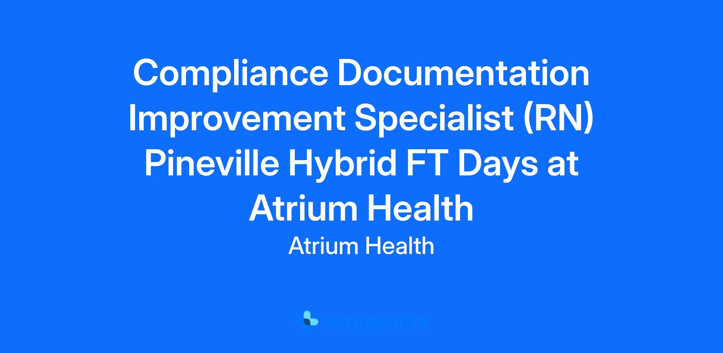 π Apply Direct: https://jobs.talemetry.com/atriumhelath/jobs/apply?job_list_id=6629&returnUrl=https%3A%2F%2Faah.wd5.myworkdayjobs.com%2FExternal%2Fjob%2FAtrium-Health-Pineville---10628-Park-Rd-Charlotte-NC%2FCompliance-Documentation-Improvement-Specialist--RN--Pineville-Hybrid-FT-Days_R186735%2Fapply&tm_job=R186735&tm_event=view&tm_company=13027