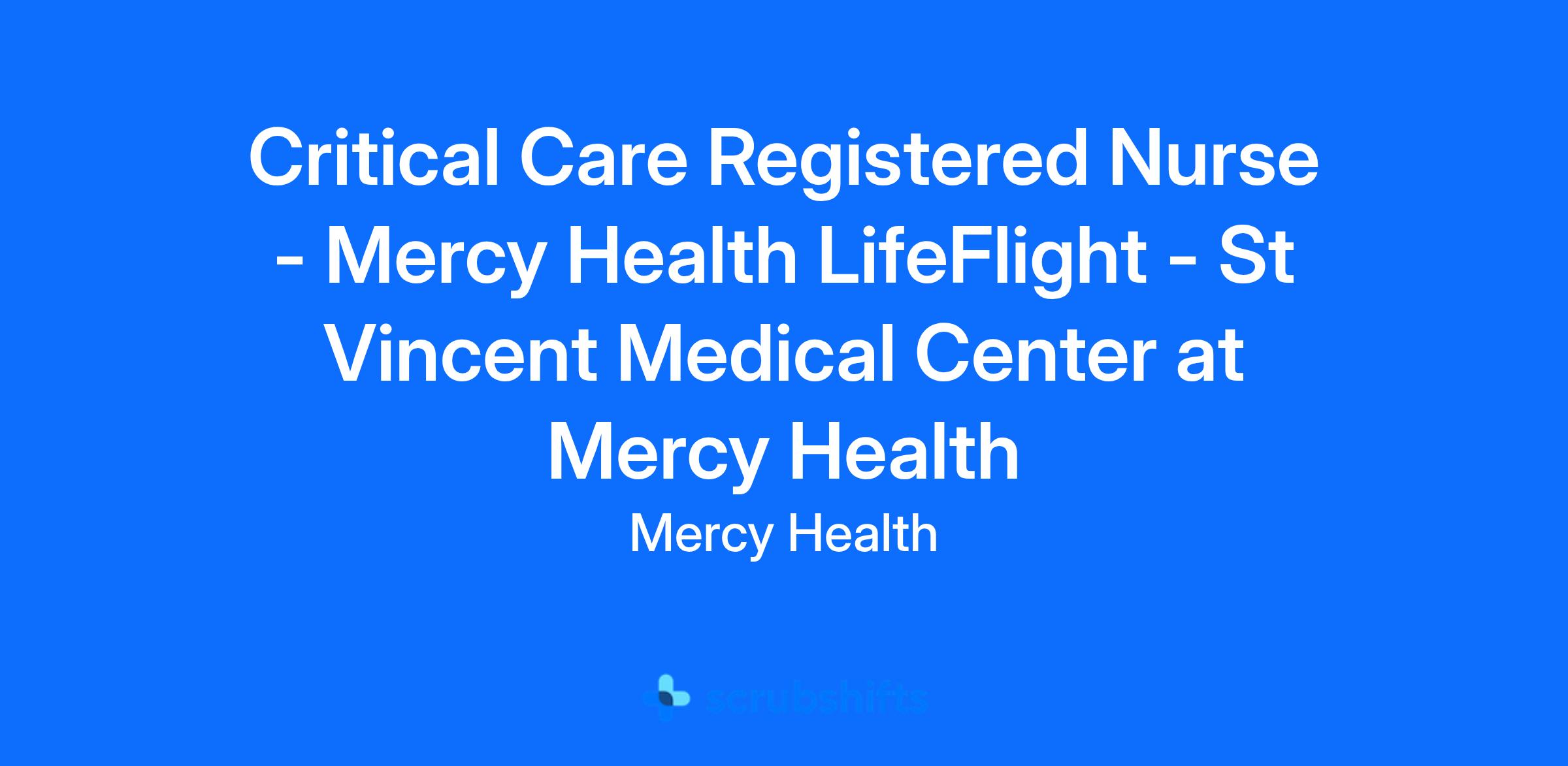 Critical Care Registered Nurse - Mercy Health LifeFlight - St Vincent Medical Center at Mercy Health