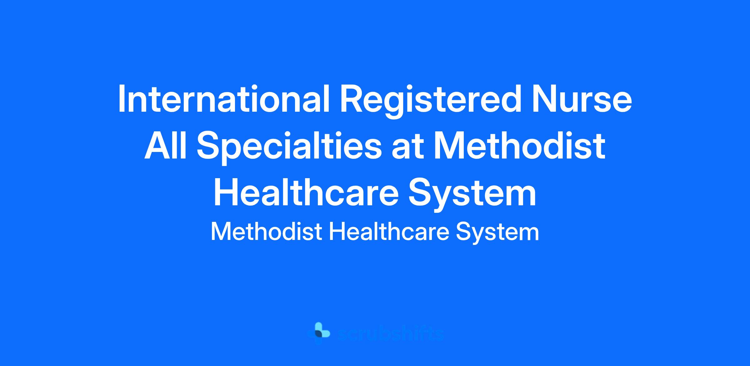 Do you want to be appreciated daily? Our nurses are celebrated for being on the front line, empathetic for patients. At Methodist Healthcare our nurses set us apart from any other healthcare provider. We are seeking a(an) International Registered Nurse All Specialties to join our healthcare family.