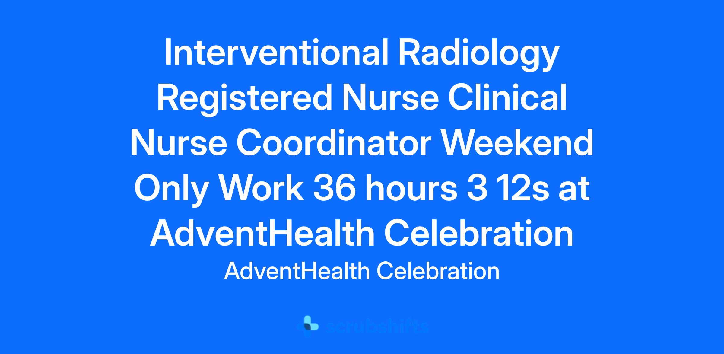 Interventional Radiology Registered Nurse Clinical Nurse Coordinator Weekend Only Work 36 hours 3 12s at AdventHealth Celebration