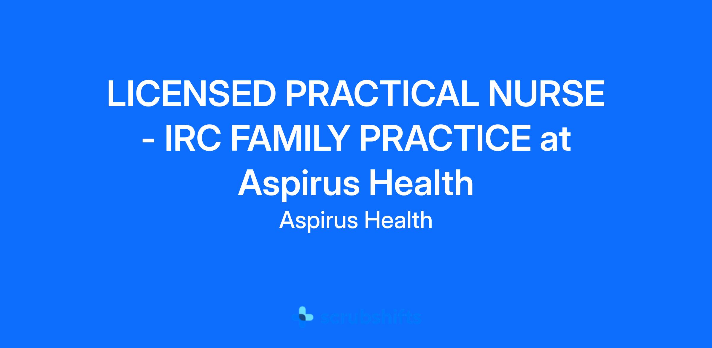 LICENSED PRACTICAL NURSE - IRC FAMILY PRACTICE at Aspirus Health