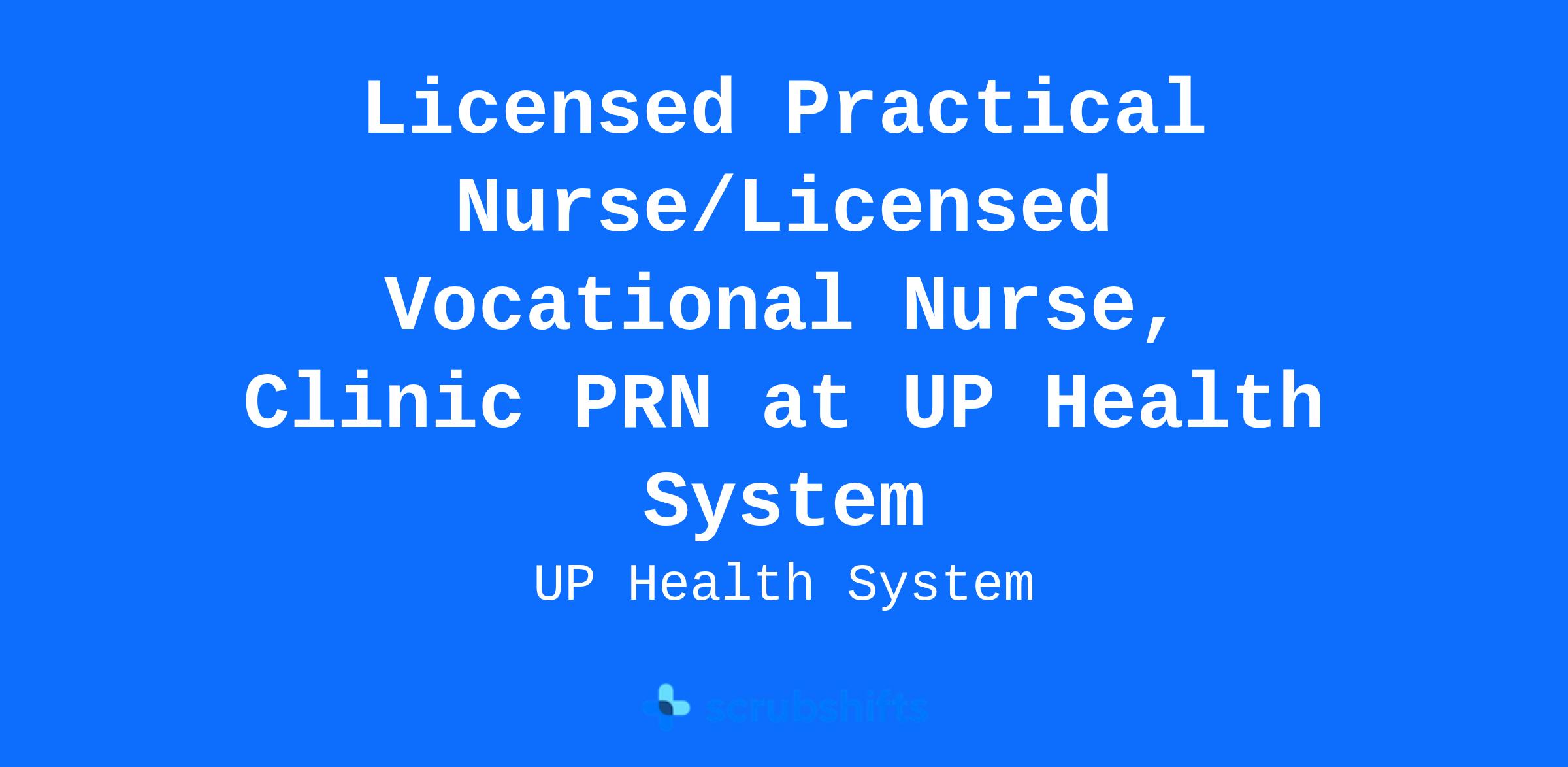 Licensed Practical Nurse/Licensed Vocational Nurse, Clinic PRN at UP Health System