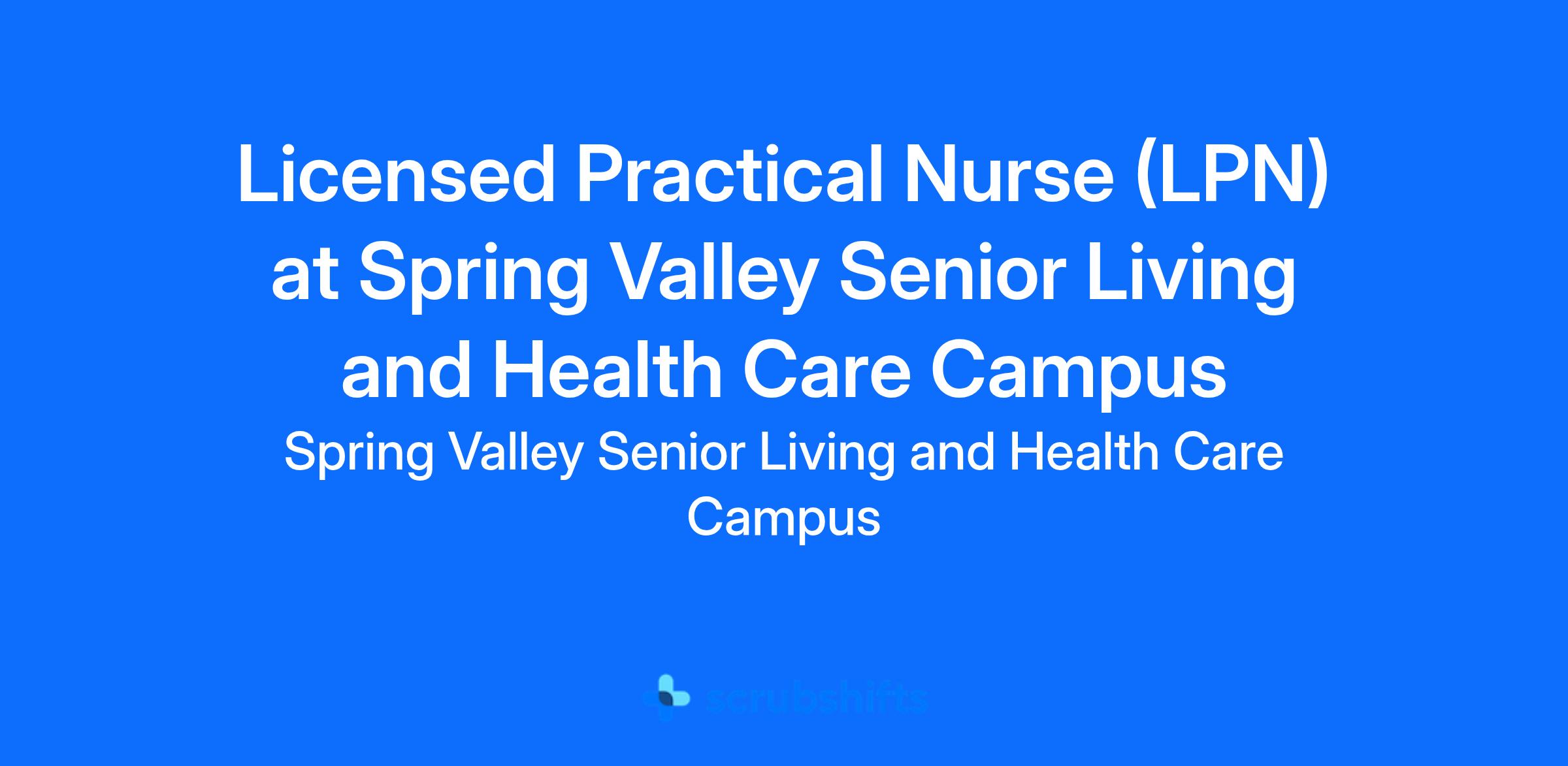 Are you a licensed nurse with a heart for senior care and a commitment to clinical excellence? Spring Valley Senior Living \\& Health Care Campus is looking for dedicated LPNs to provide compassionate, high\\-quality care to our residents. If you’re ready to make a meaningful impact and be part of a supportive team, we want YOU on board!