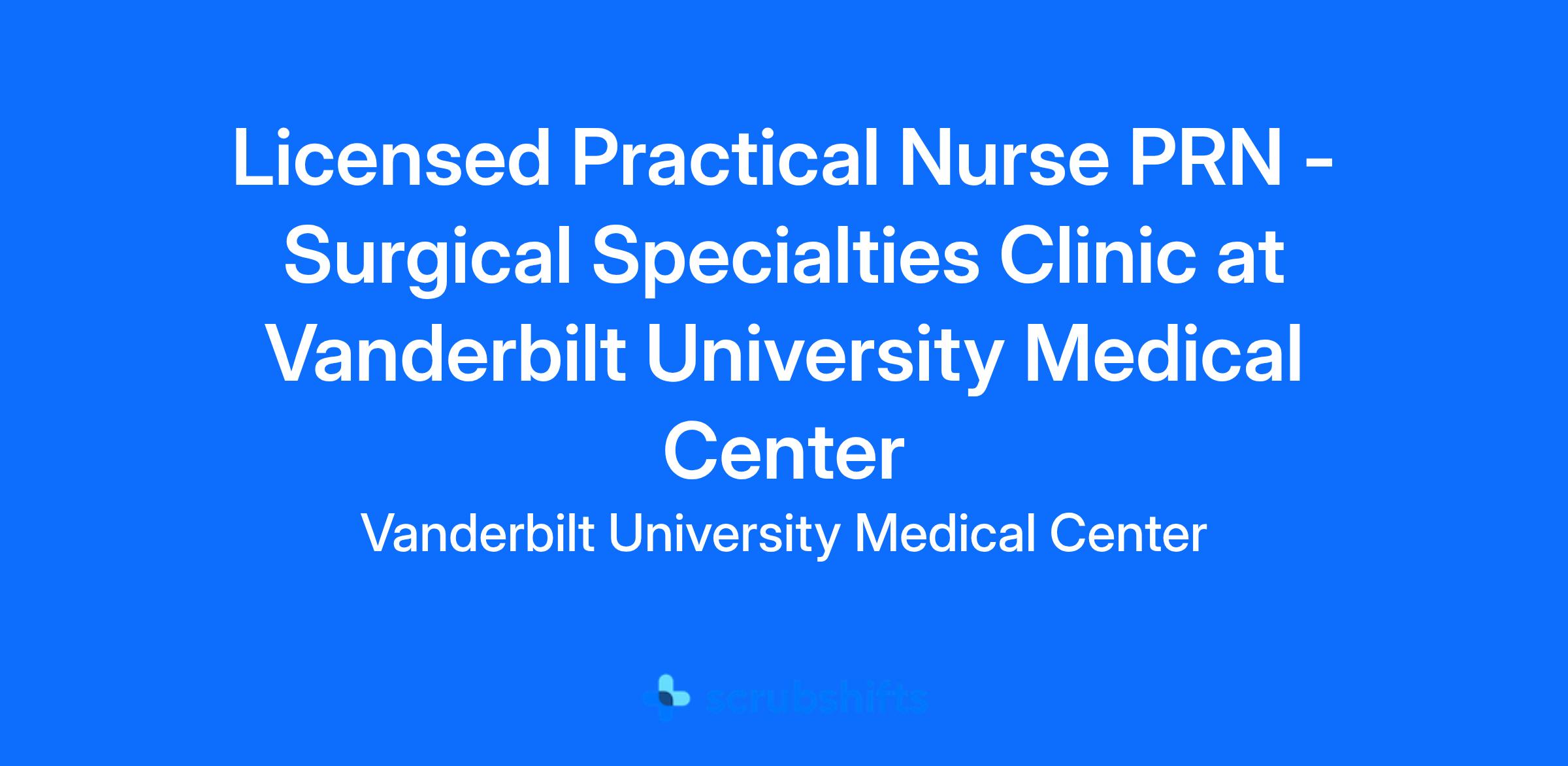๐ Apply Direct: https://vumc.wd1.myworkdayjobs.com/en-US/vumccareers/job/Franklin-TN/Licensed-Practical-Nurse-PRN---Surgical-Specialties-Clinic_R-48450-1