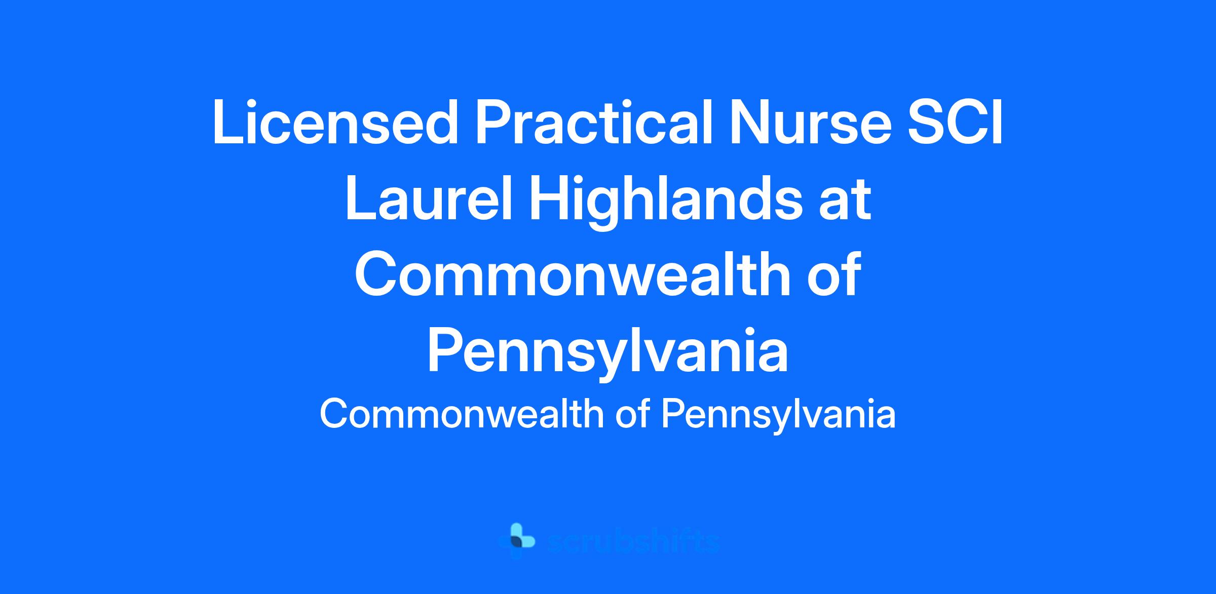 * If you are within 60 days of completing a licensed practical nursing program approved by the State Board of Nursing, you are eligible to apply for this job posting. At the time of appointment to a position, you must show proof of possession of a current, valid PA temporary practice permit or PA Licensed Practical Nurse license.
