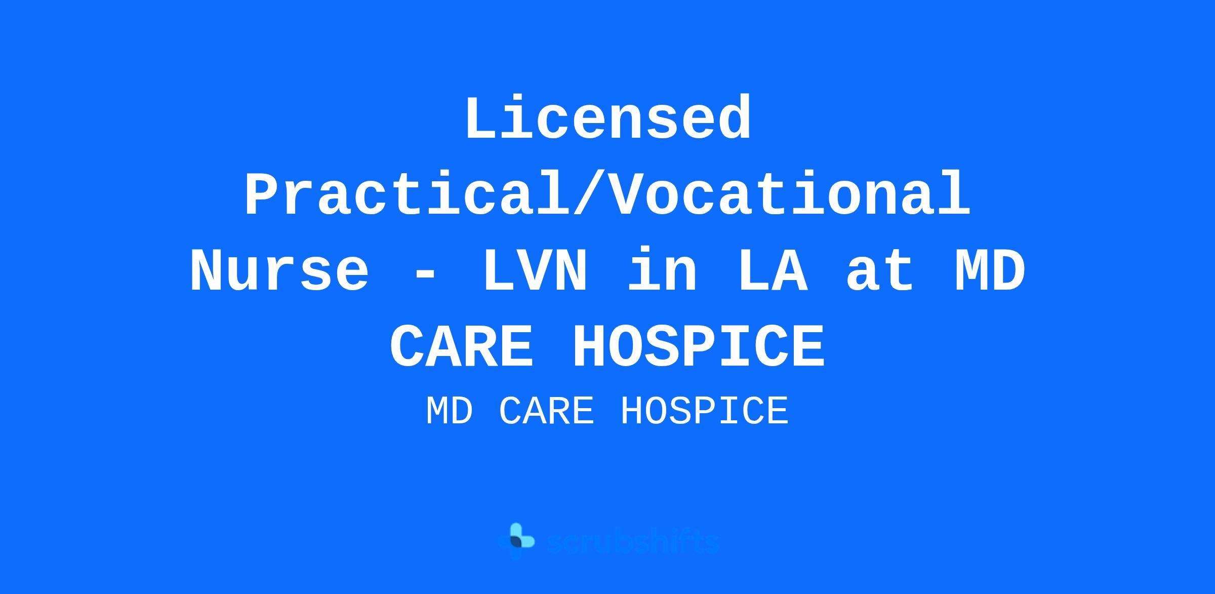 Licensed Practical/Vocational Nurse - LVN in LA at MD CARE HOSPICE