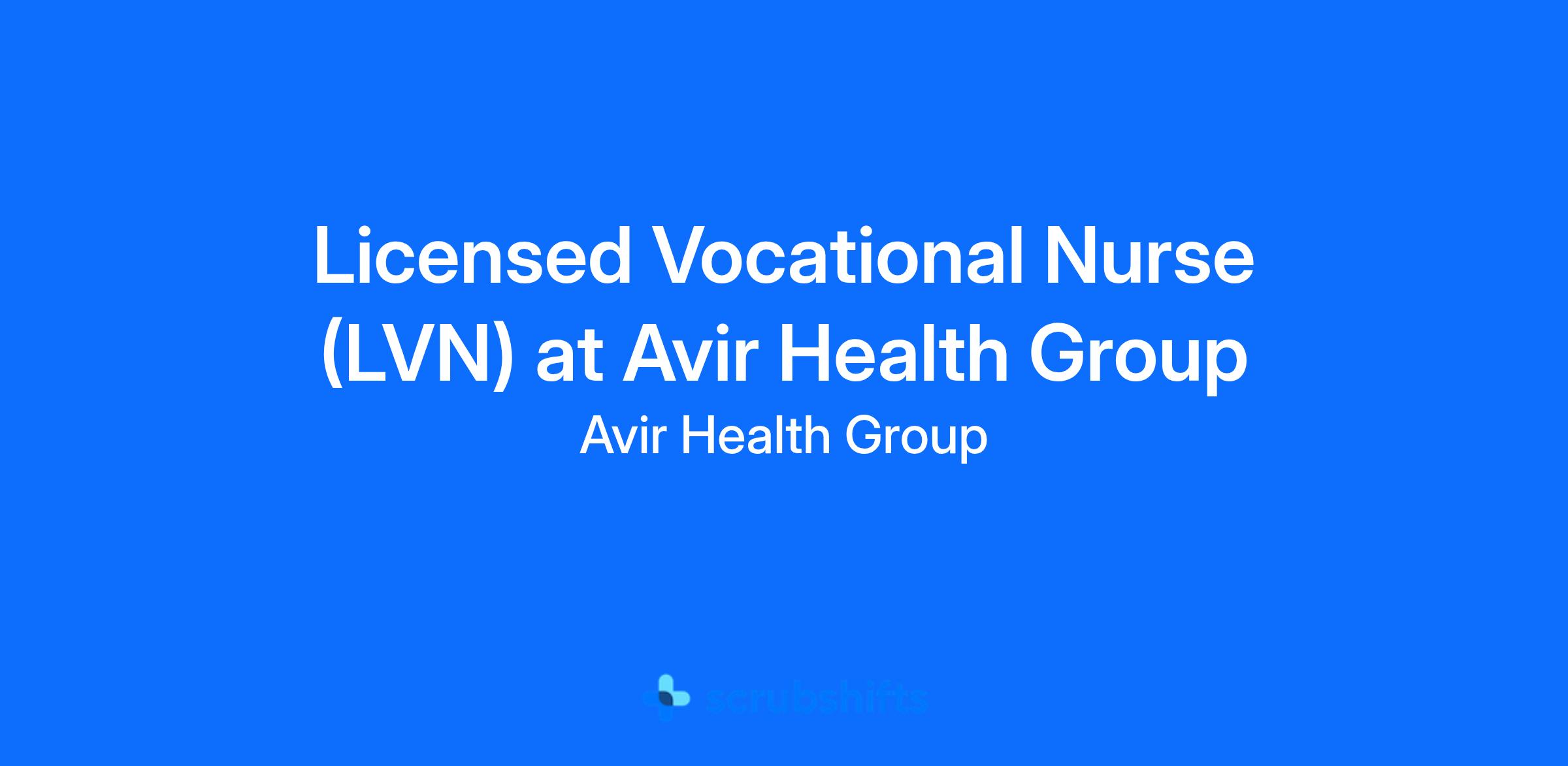 π Description: **Avir Health Group is seeking a qualified Licensed Vocational Nurse (LVN) to join our family!**