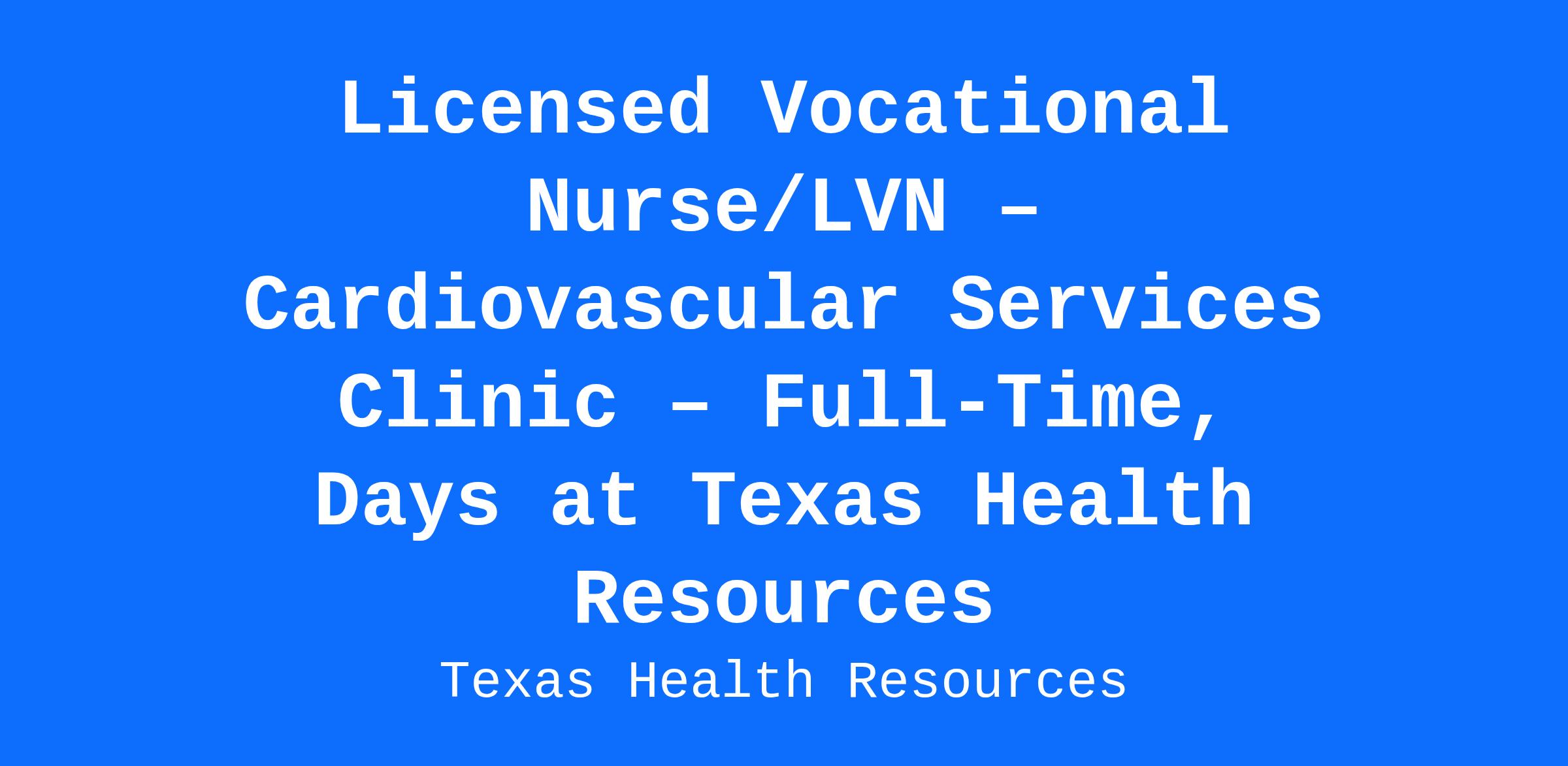 Licensed Vocational Nurse/LVN β Cardiovascular Services Clinic β Full-Time, Days at Texas Health Resources