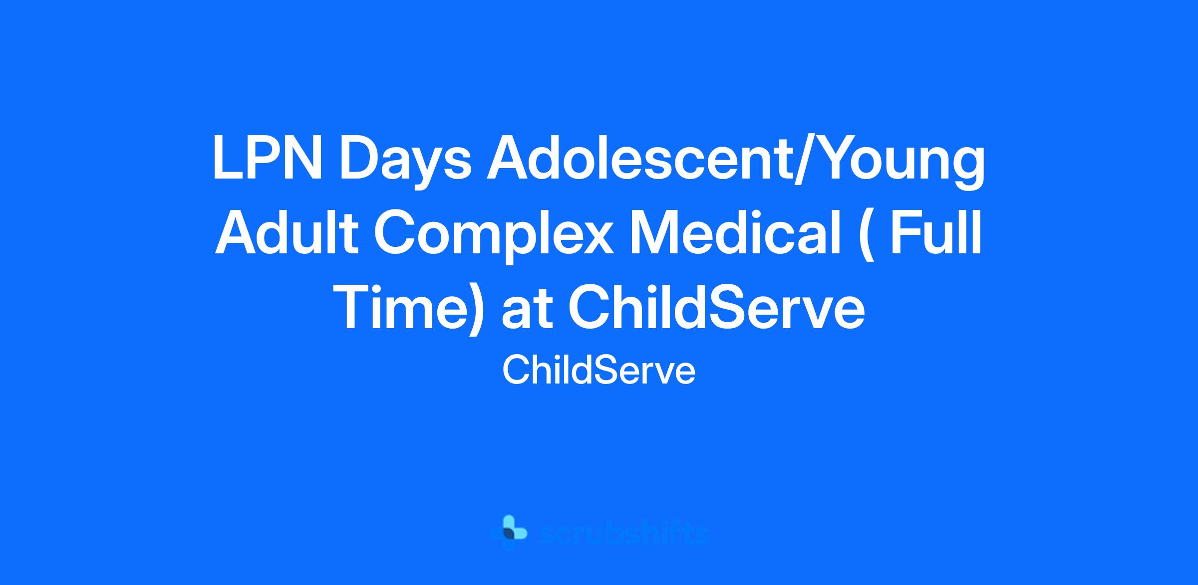 LPN Days Adolescent/Young Adult Complex Medical ( Full Time) at ChildServe