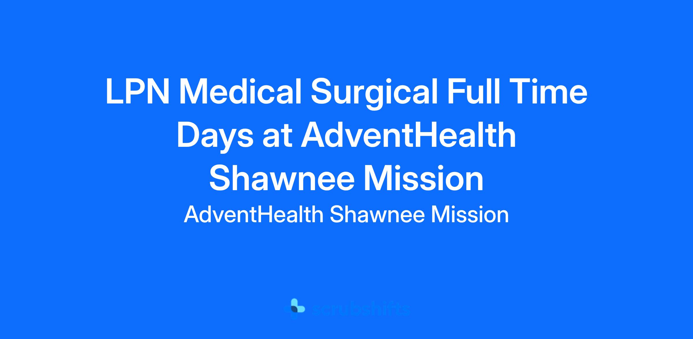 At AdventHealth Shawnee Mission, formerly Shawnee Mission Medical Center, you're more than just a number on a chart. You're a whole person, who functions best when physically, emotionally, and spiritually fit. Find whole\\-person care, dedicated teams and staff, and a wide variety of medical services, all at our hospital in Shawnee Mission, Kansas.