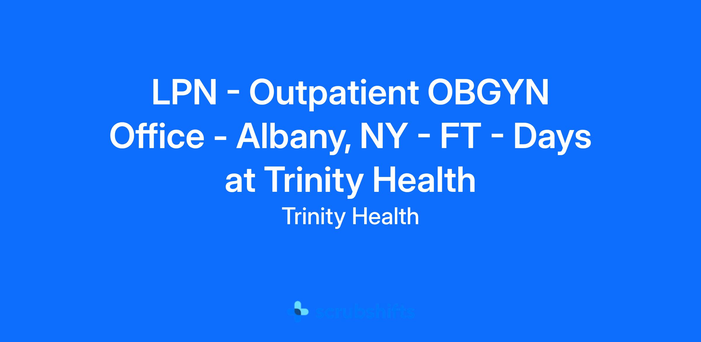 LPN - Outpatient OBGYN Office - Albany, NY - FT - Days at Trinity Health