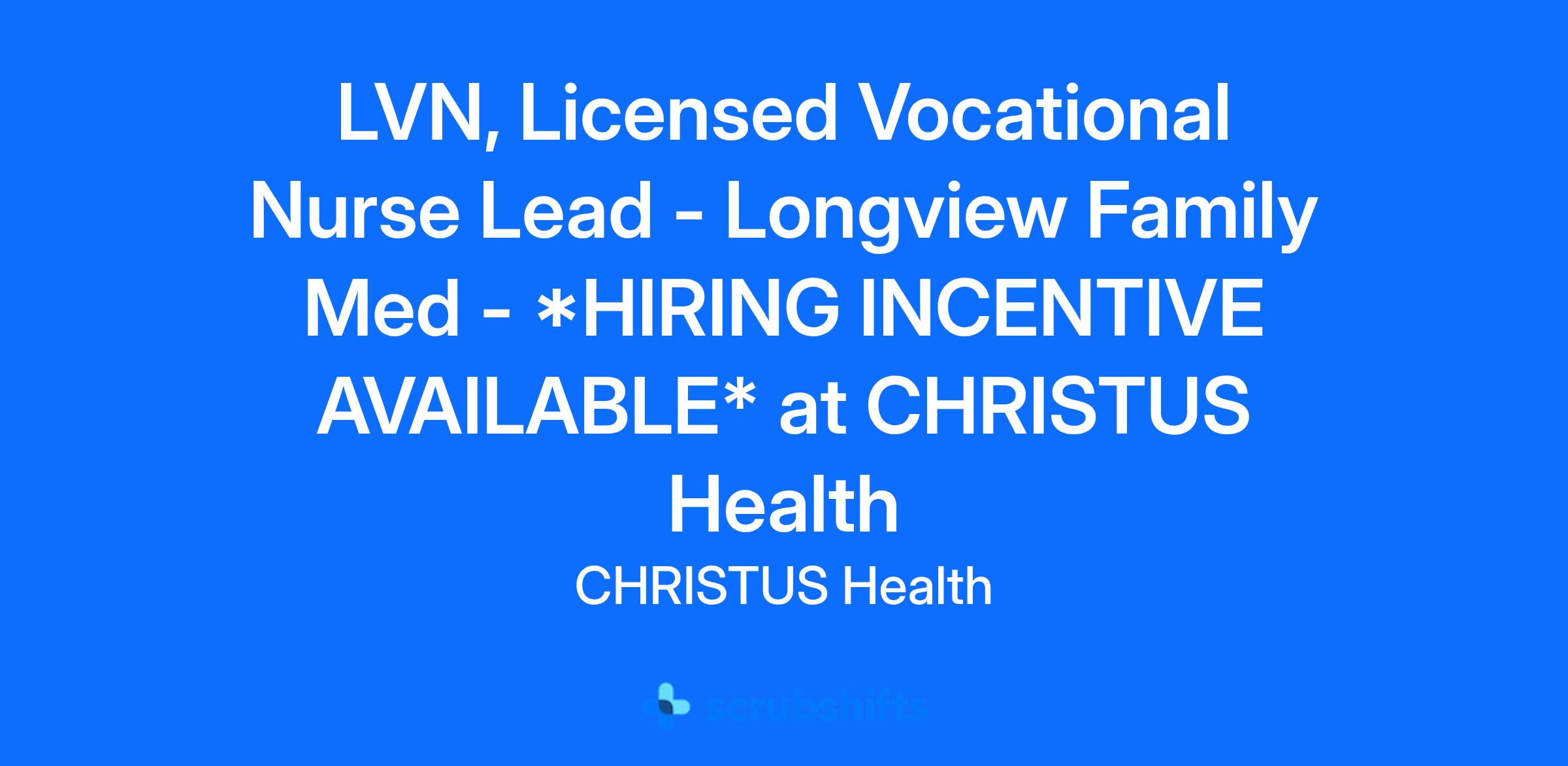 LVN, Licensed Vocational Nurse Lead - Longview Family Med - *HIRING INCENTIVE AVAILABLE* at CHRISTUS Health