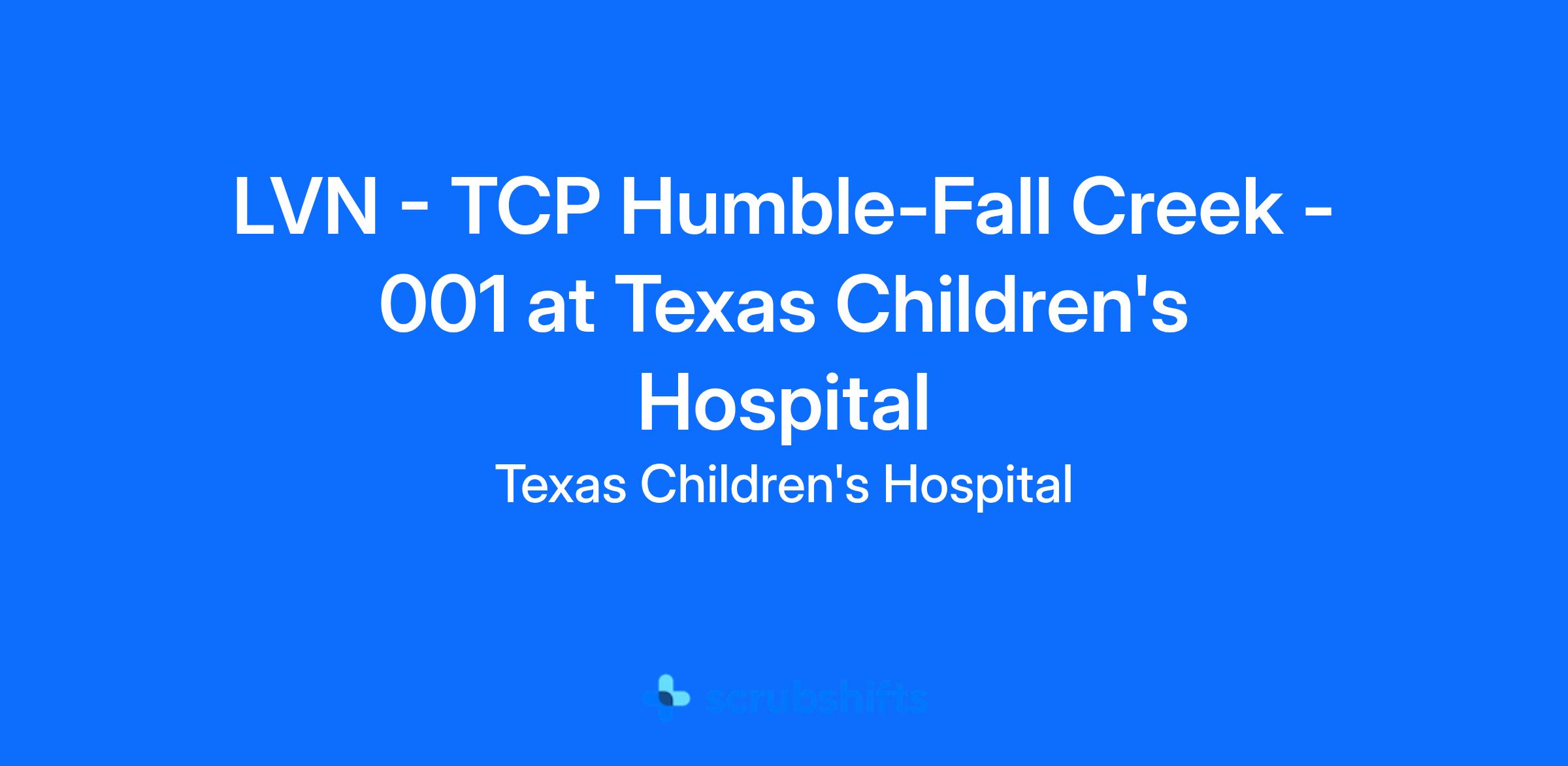 π Description: We are searching for a ***LVN at Texas Children's Pediatrics Clinic\\- Humble\\-Fall Creek location*** β someone who works well in a fast\\-paced setting. In this position, you will gather information, assess and provide direct care to patients. Works collaboratively with other members of the healthcare team to render age appropriate care.