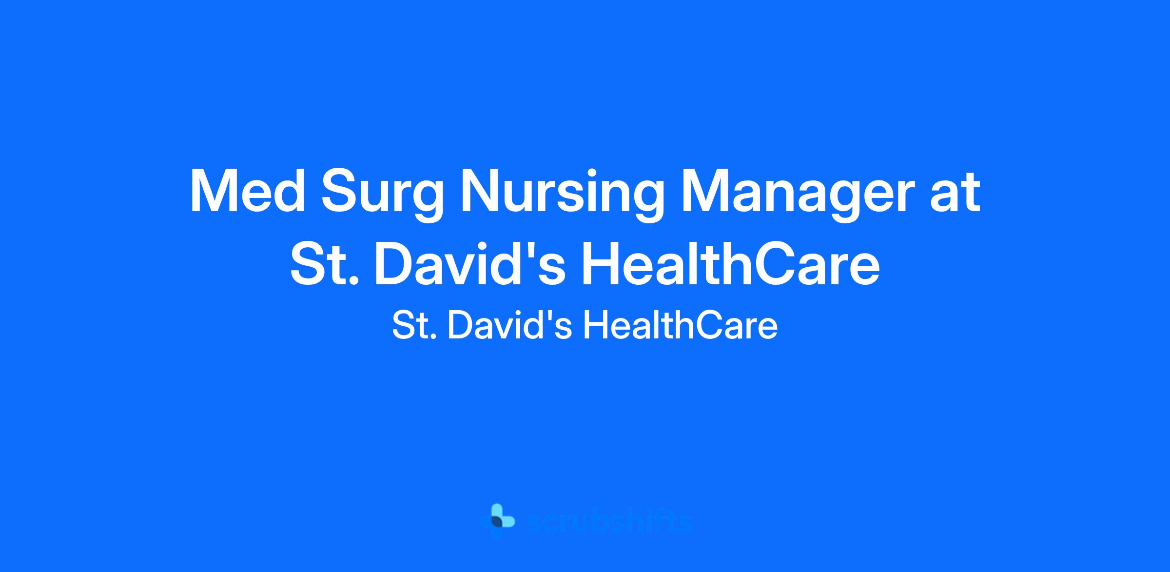 Last year alone, HCA Healthcare colleagues invested over 156,000 hours impacting our communities. As a(an) Manager of Medical\\-Surgical Nursing with St. David's Georgetown Hospital, you can be a manager in an organization that is devoted to giving!