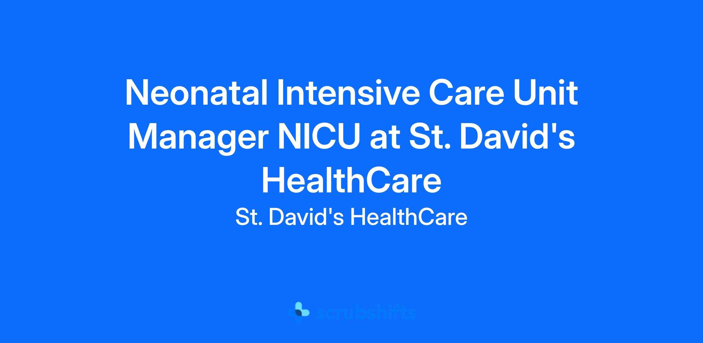 We are seeking a(an) Neonatal Intensive Care Unit Manager NICU with St. David's North Austin Medical Center to promote growth and unlock possibilities. At HCA Healthcare, we are committed to the care and improvement of human life. Share your leadership skills and come make a difference with us!