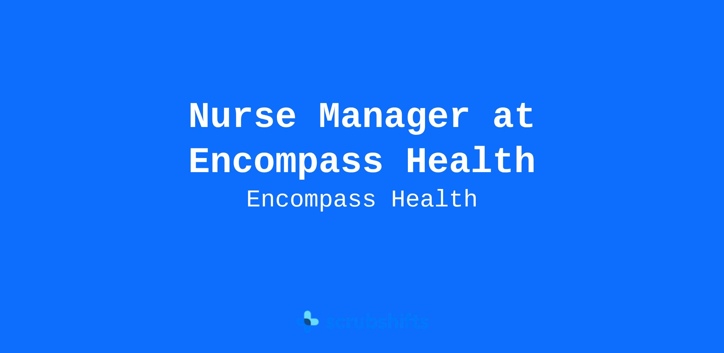 Seeking a career that's both personally enriching and professionally rewarding, close to home? Encompass Health invites you into a welcoming space that feels like family, where your worth is embraced, fostering connections akin to lifelong friendships. As a Nurse Manager, envision making a profound impact within your community by providing essential care and guidance throughout patients' rehabilitation journeys. Your role is critical, offering leadership ensuring seamless implementation of procedures while delivering top\\-tier, compassionate, and tailored care. Embrace a team\\-driven, supportive environment that embraces joy in their work, providing access to cutting\\-edge technology and comprehensive benefits from day one. Join us and discover a career where your leadership shapes impactful care and personal fulfillment. A Glimpse into Our World