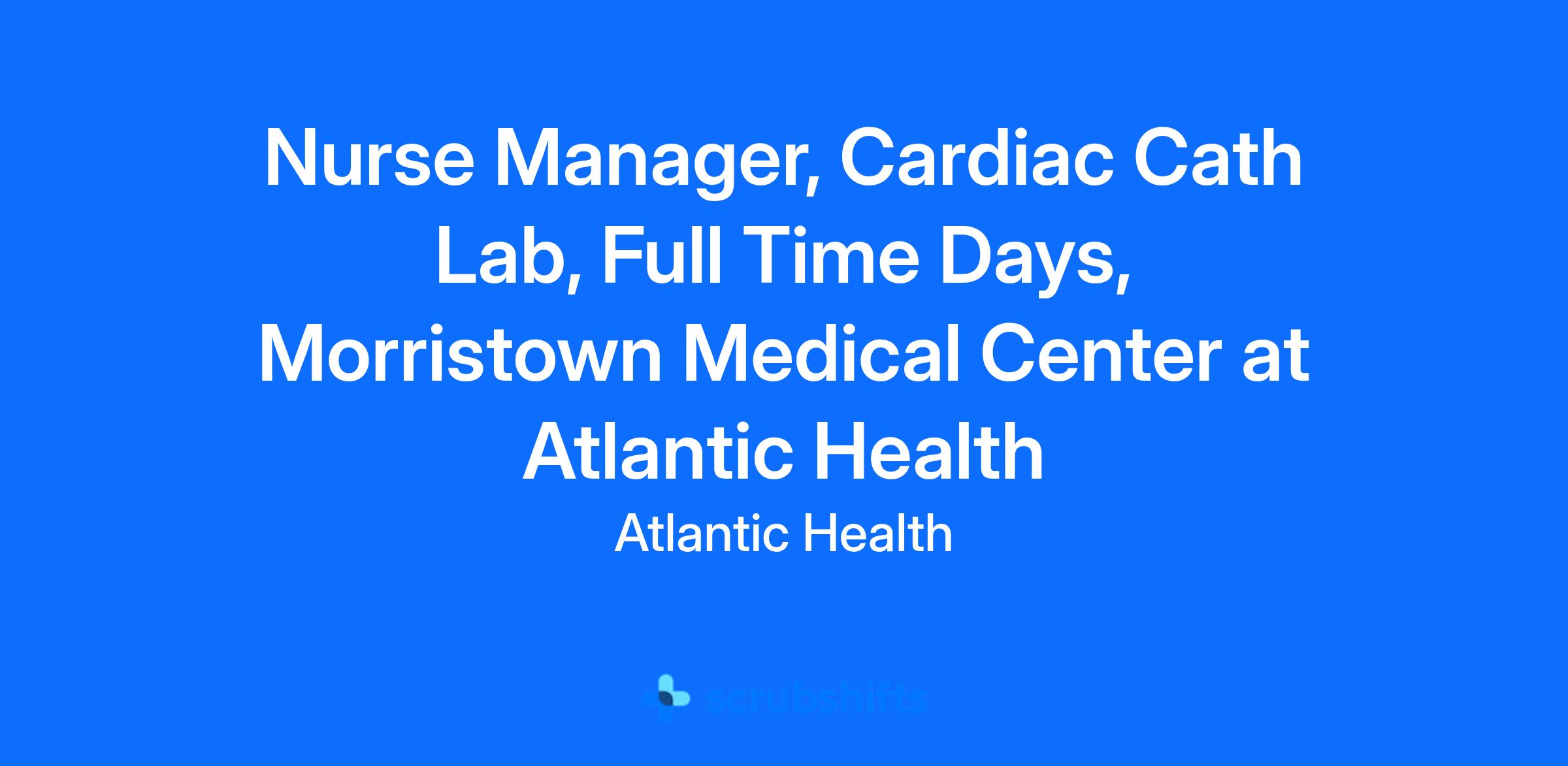 Nurse Manager, Cardiac Cath Lab, Full Time Days, Morristown Medical Center at Atlantic Health