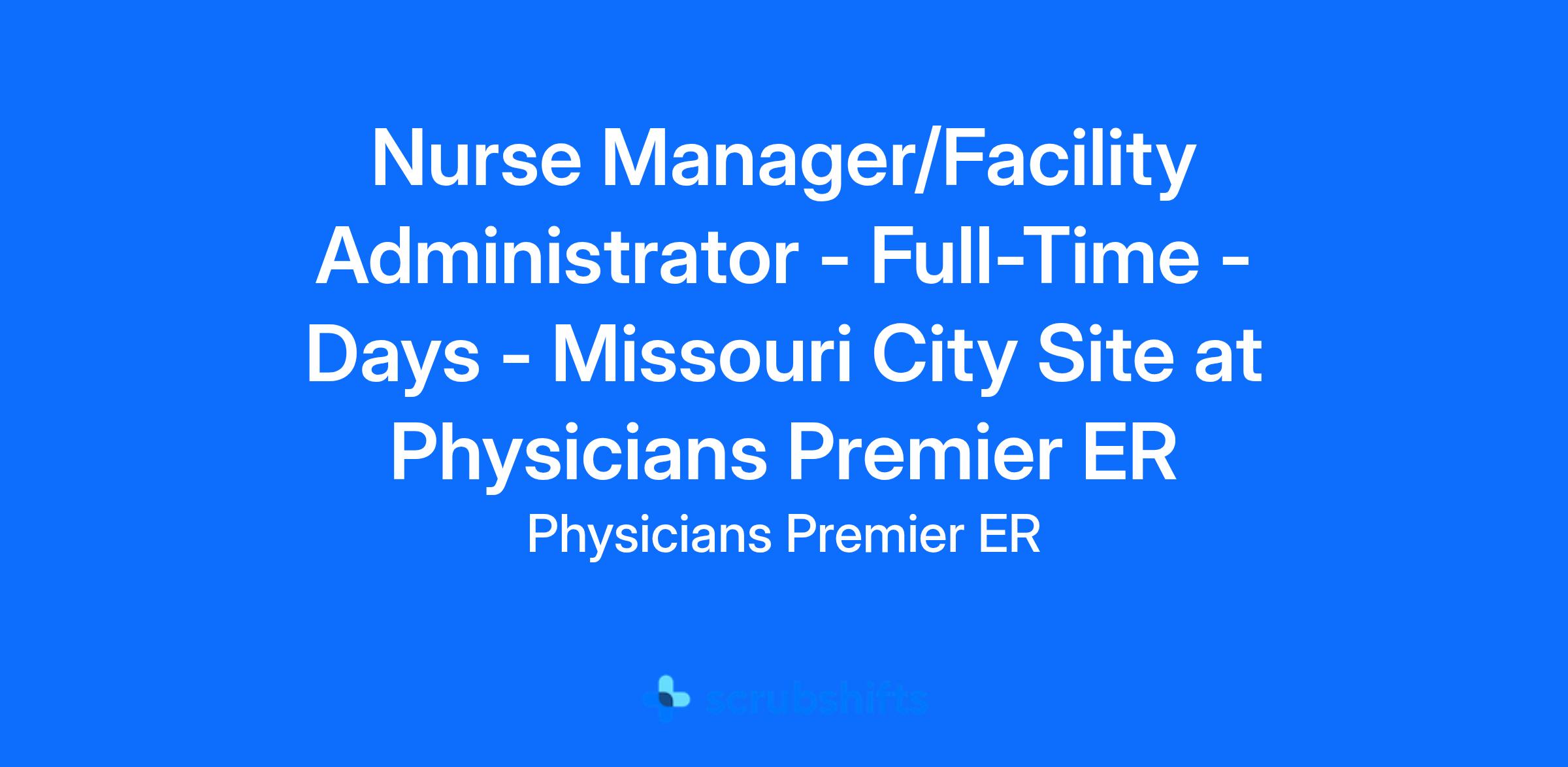 Nurse Manager/Facility Administrator - Full-Time - Days - Missouri City Site at Physicians Premier ER