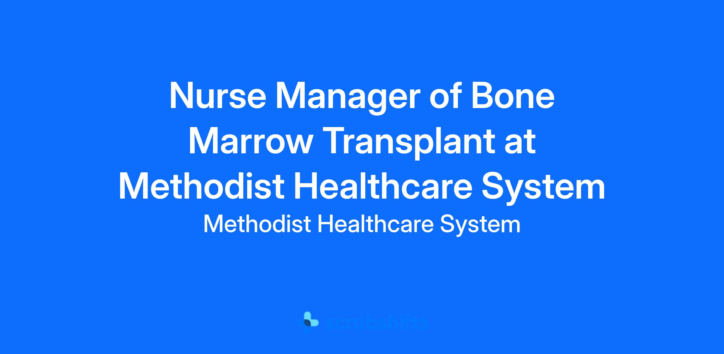 Do you want to join an organization that invests in you as a(an) Nurse Manager of Bone Marrow Transplant? At Methodist Hospital, you come first. HCA Healthcare has committed up to $300 million in programs to support our incredible team members over the course of three years.