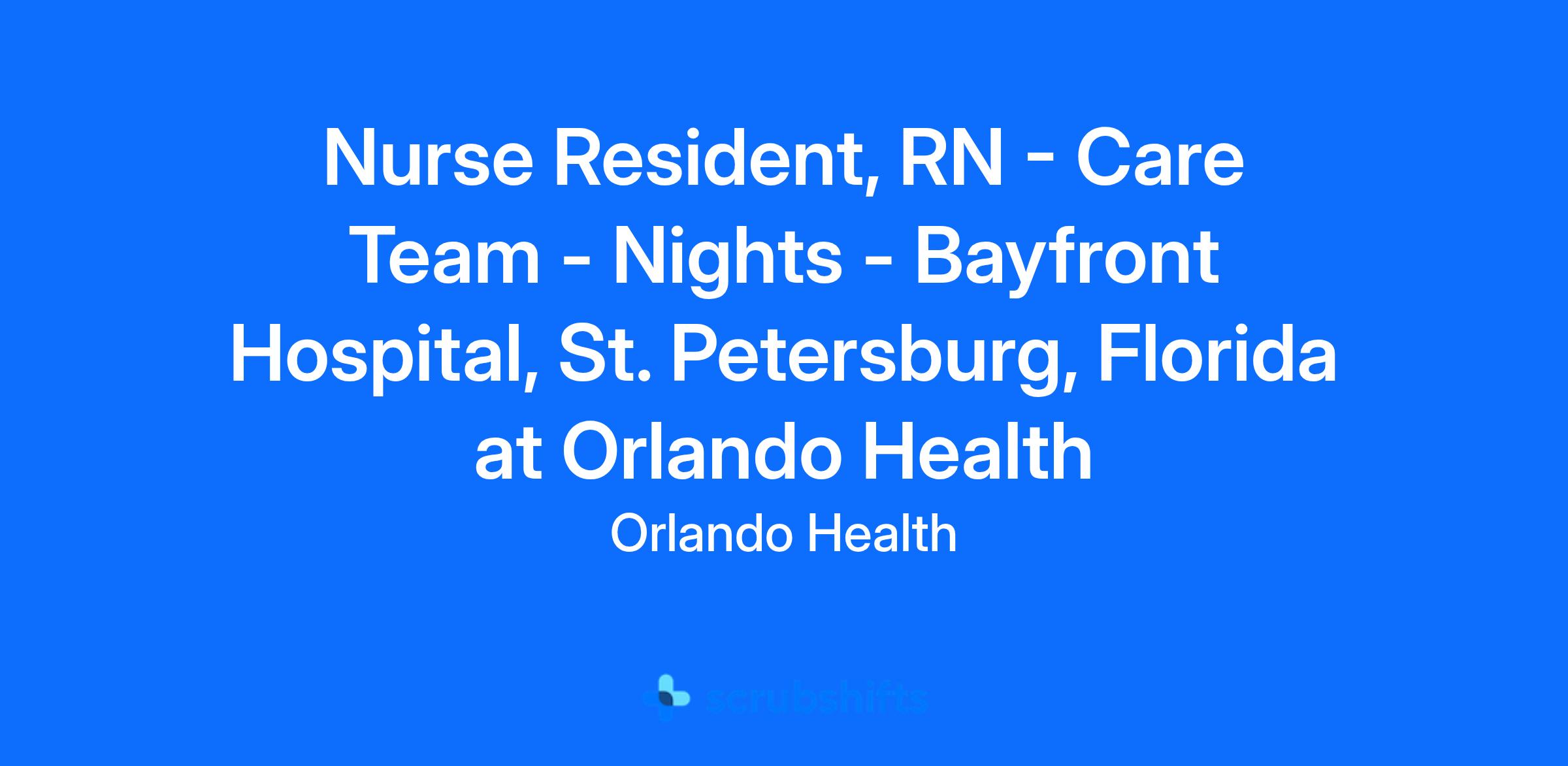 Nurse Resident, RN - Care Team - Nights - Bayfront Hospital, St. Petersburg, Florida at Orlando Health