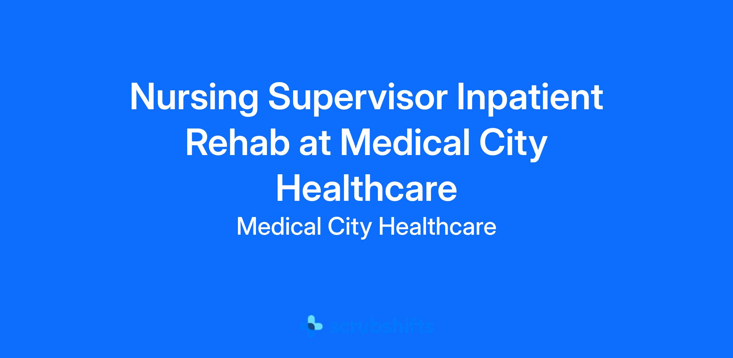 The In Patient Rehab RN Supervisor ensures and delivers high quality, patient\\-centered care and coordination of all functions in the unit/department during the designated shift. In collaboration with other members of the management team, the CNC directs, monitors, and evaluates nursing care in accordance with established policies/procedures, serves as a resource person for staff, and models a commitment to the organization’s vision/mission/values to support an unparalleled patient experience and clinical outcomes that contribute to overall departmental performance.