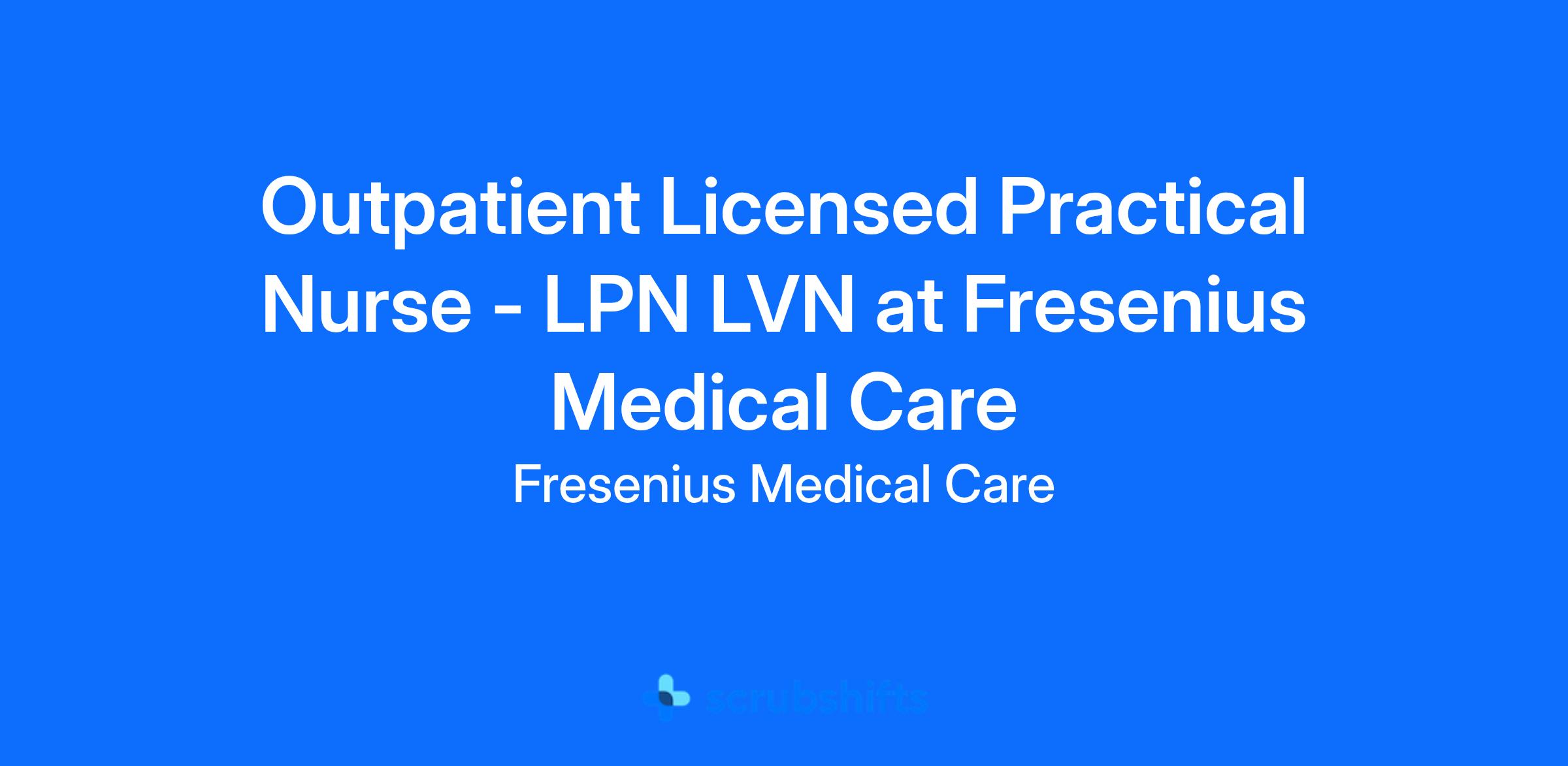 ๐ Apply Direct: https://jobs.freseniusmedicalcare.com/outpatient-licensed-practical-nurse-lpn-lvn/job/5CBECCF7F86849AE16BBFE86E87005A8