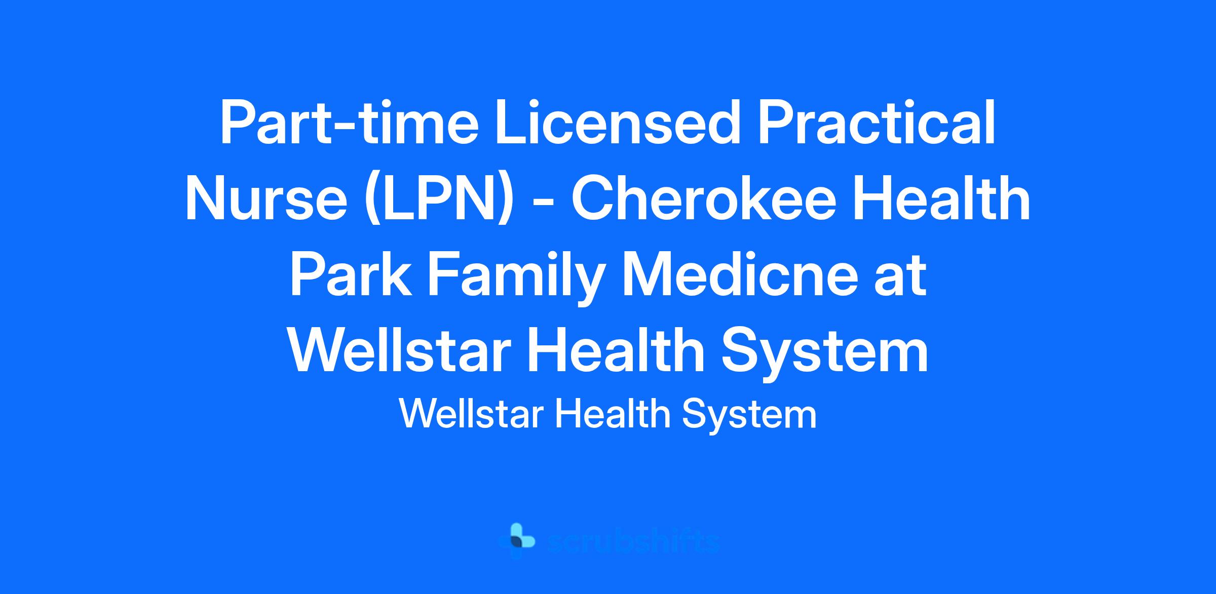 Part-time Licensed Practical Nurse (LPN) - Cherokee Health Park Family Medicne at Wellstar Health System