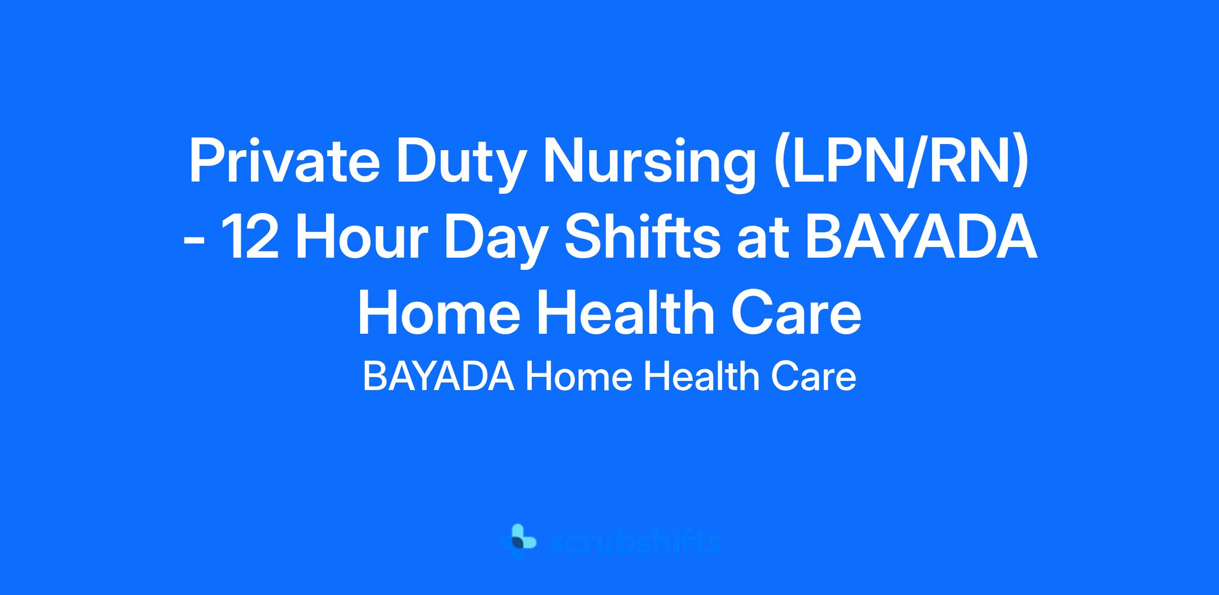 š Apply Direct: https://jsv3.recruitics.com/redirect?rx_cid=3588&rx_jobId=8219807002&rx_url=https%3A%2F%2Fjobs.bayada.com%2Fen%2Fjobs%2F8219807002%2Fprivate-duty-nursing-lpnrn-12-hour-day-shifts%2F%3Fgh_src%3D335f98fe2us%26rx_a%3D1%26rx_c%3Dsnu_pa%26rx_ch%3Djobp4p%26rx_group%3D309686%26rx_id%3D21849b1f-ae15-11f0-a440-3d33ddf5ed2d%26rx_job%3D8219807002%26rx_medium%3Dcpc%26rx_r%3Dnone%26rx_source%3DIndeed%26rx_ts%3D20251021T060120Z%26rx_vp%3Dcpc%26source%3Drecruitics_indeed%26utm_source%3Drecruitics_indeed
