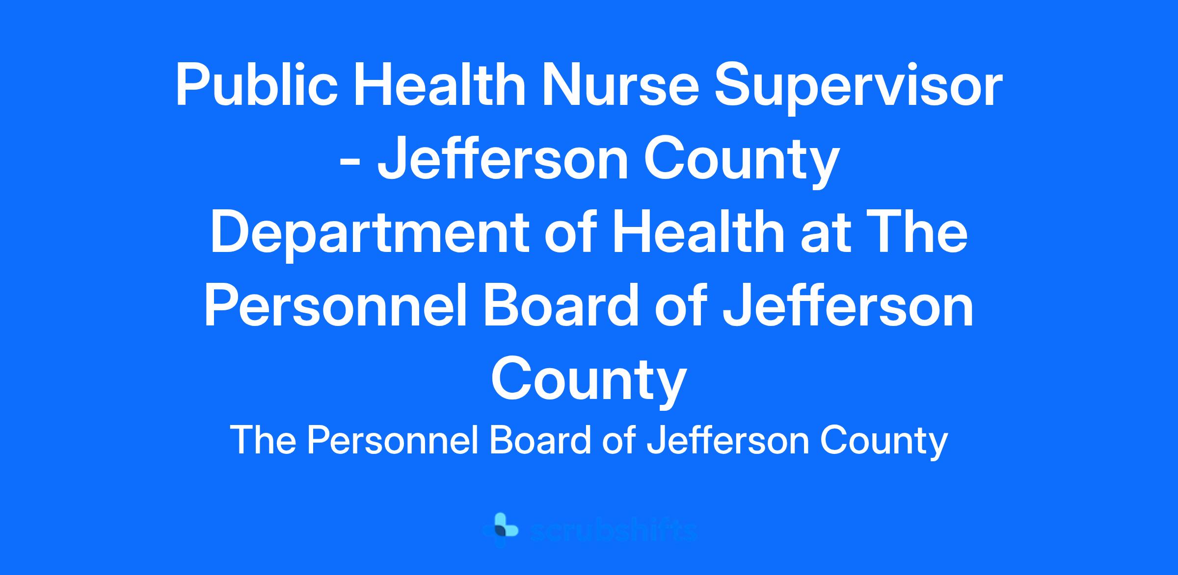 š Apply Direct: https://pbjcal.wd5.myworkdayjobs.com/en-US/JobsQuest/job/Merit-System/Public-Health-Nurse-Supervisor---Jefferson-County-Department-of-Health_R0014281