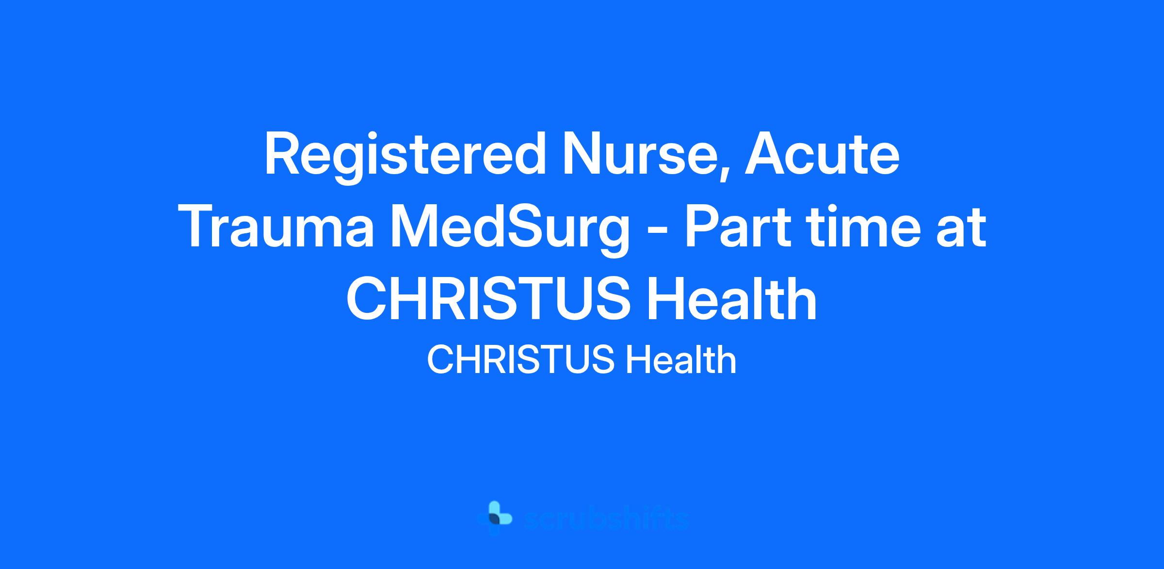 Registered Nurse, Acute Trauma MedSurg - Part time at CHRISTUS Health