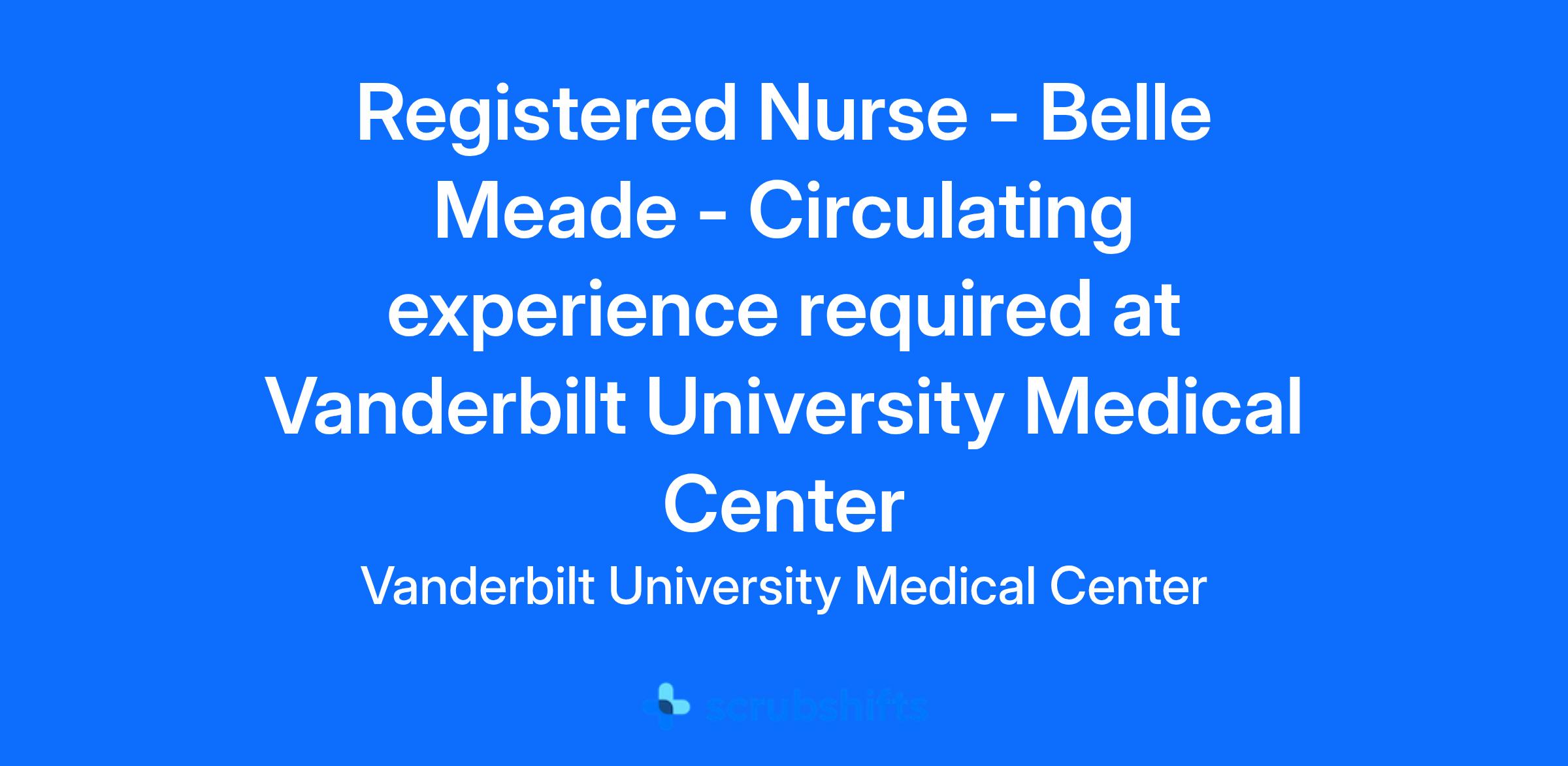๐ Apply Direct: https://vumc.wd1.myworkdayjobs.com/en-US/vumccareers/job/Nashville-TN/Registered-Nurse---Belle-Meade---Circulating-experience-required_R-40788-1