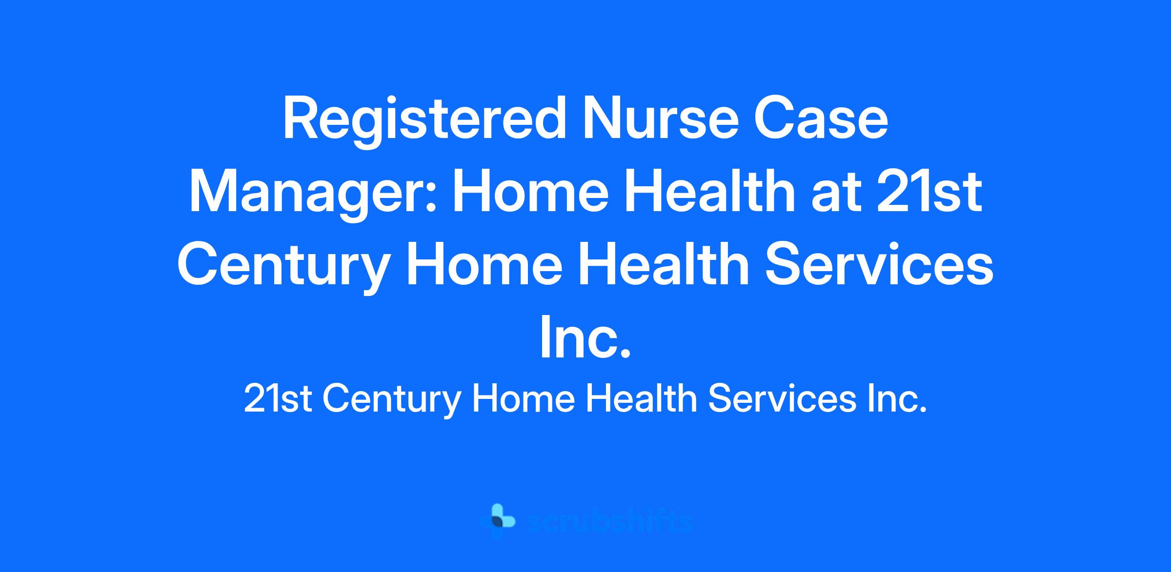 Patient and employee feedback on Yelp, Google, Glassdoor, and Indeed further validates our commitment to quality care and workplace excellence. By prioritizing engagement and satisfaction, 21HHS attracts top clinical talent and delivers outstanding outcomes, cementing our place as a leader in home health. **Please note: All opportunities at 21HHS require being in the field visiting patients in their homes. Remote/work\\-from\\-home positions are not available unless specifically noted.** **Full Time Registered Nurse Case Manager****Territory: Woodland and Surrounding Cities** **What you’ll do as a Registered Nurse (RN) Home Health Case Manager:**