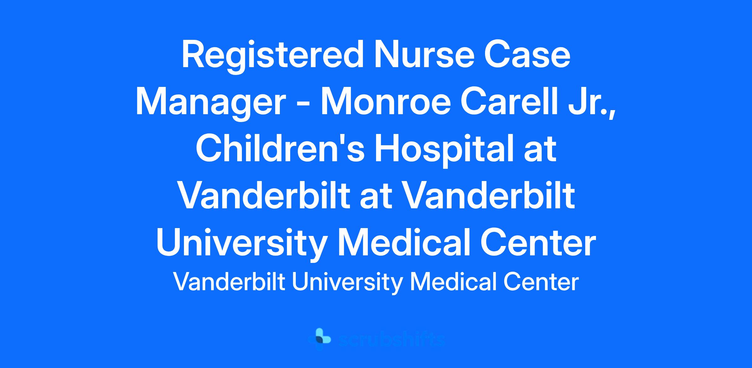 ๐ Apply Direct: https://vumc.wd1.myworkdayjobs.com/en-US/vumccareers/job/Nashville-TN/Registered-Nurse-Case-Manager---Monroe-Carell-Jr--Children-s-Hospital-at-Vanderbilt_R-48260-2