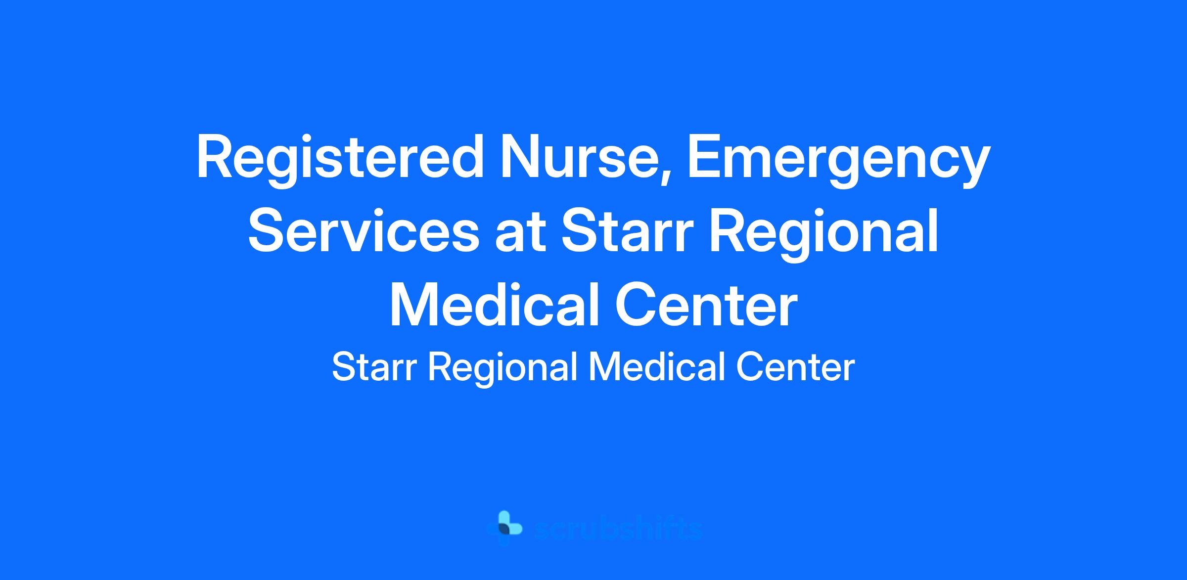 Starr Regional Medical Center is part of Lifepoint Health, a diversified healthcare delivery network with facilities coast to coast. We are driven by a profound commitment to prioritize your well\\-being so you can provide exceptional care to others. As a **Registered Nurse (RN)** joining our team, youโre embracing a vital mission dedicated to *making communities healthier* *ยฎ*. Join us on this meaningful journey where your skills, compassion and dedication will make a remarkable difference in the lives of those we serve.