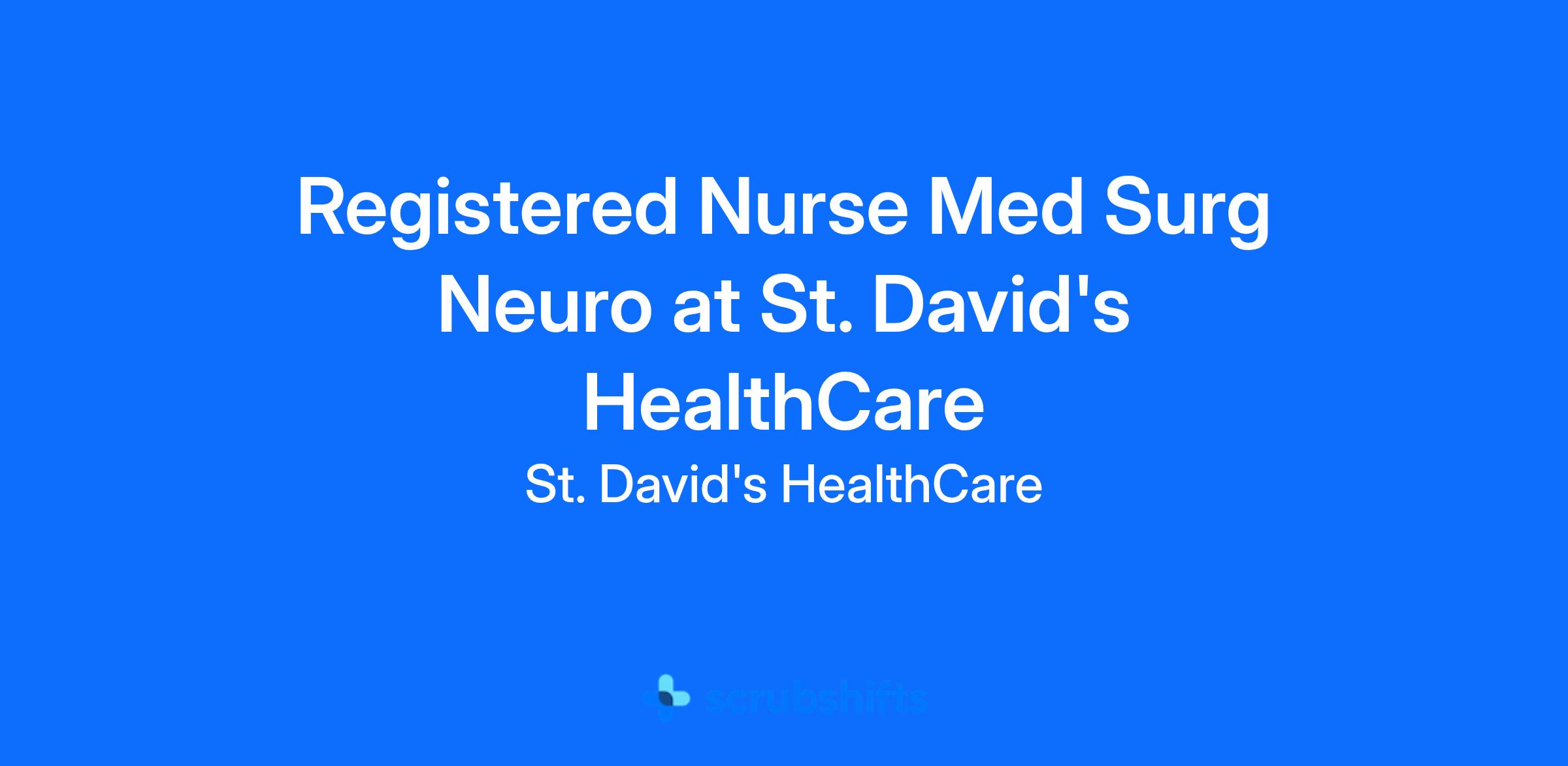 Do you currently have an opportunity to make a real impact with your work? With over 2,000 sites of care and serving over 31\\.2 million patient interactions every year, nurses at St. David's Medical Center have the opportunity to make a real impact. As a(an) Registered Nurse Neuro Progressive Care you can be a part of change.