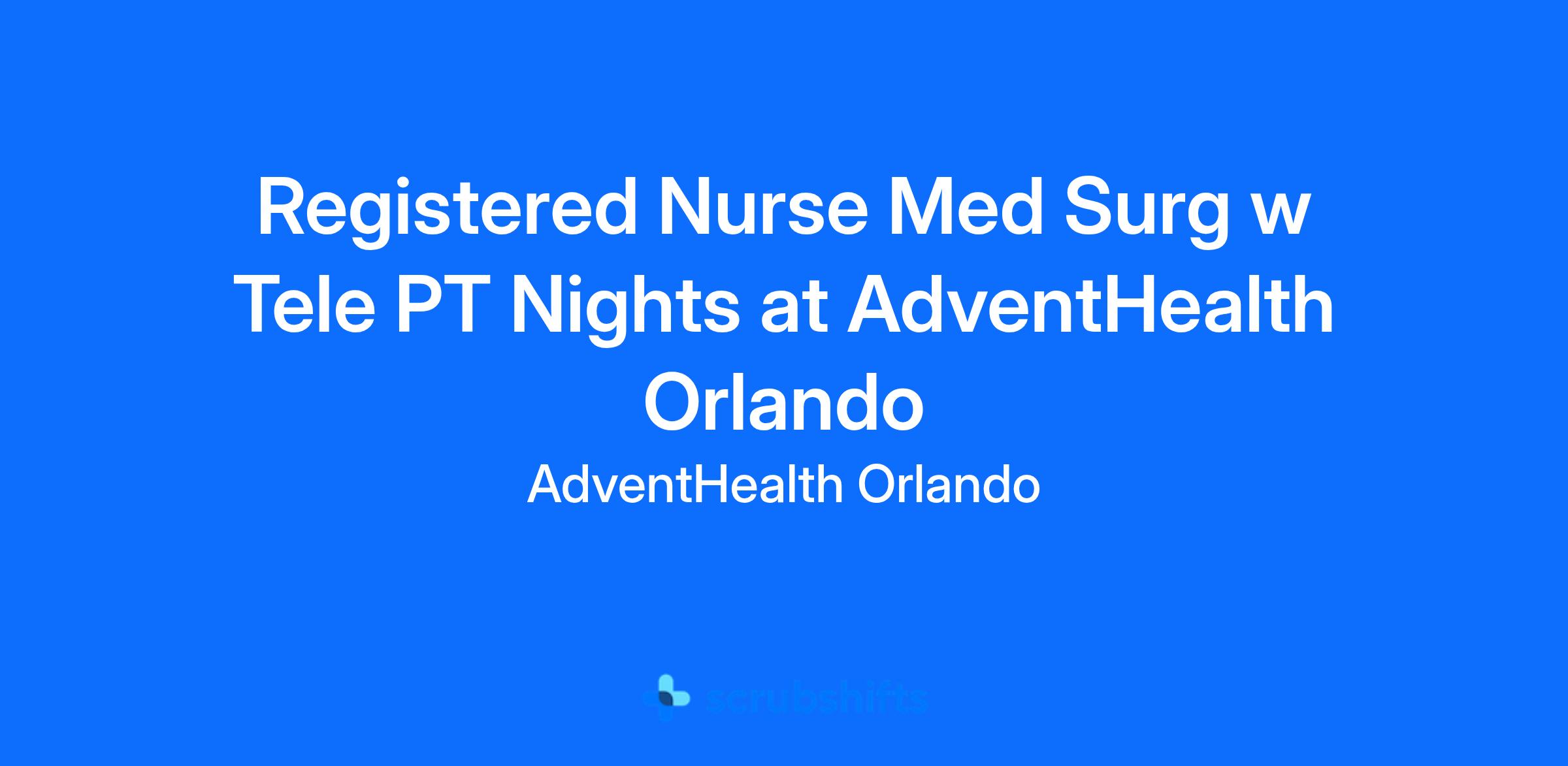 * Joining AdventHealth is about being part of something bigger. Its about belonging to a community that believes in the wholeness of each person, and serves to uplift others in body, mind, and spirit. AdventHealth is a place where you can thrive professionally, and grow spiritually, by Extending the Healing Ministry of Christ. Where you will be valued for who you are and the unique experiences you bring to our purpose\\-minded team. All while understanding that together we are even better. **Schedule:** Full Time **Shift** : Nights, 2/12s **Location** : 601 EAST ROLLINS STREET, Orlando, 32803 **Unit Highlights:**