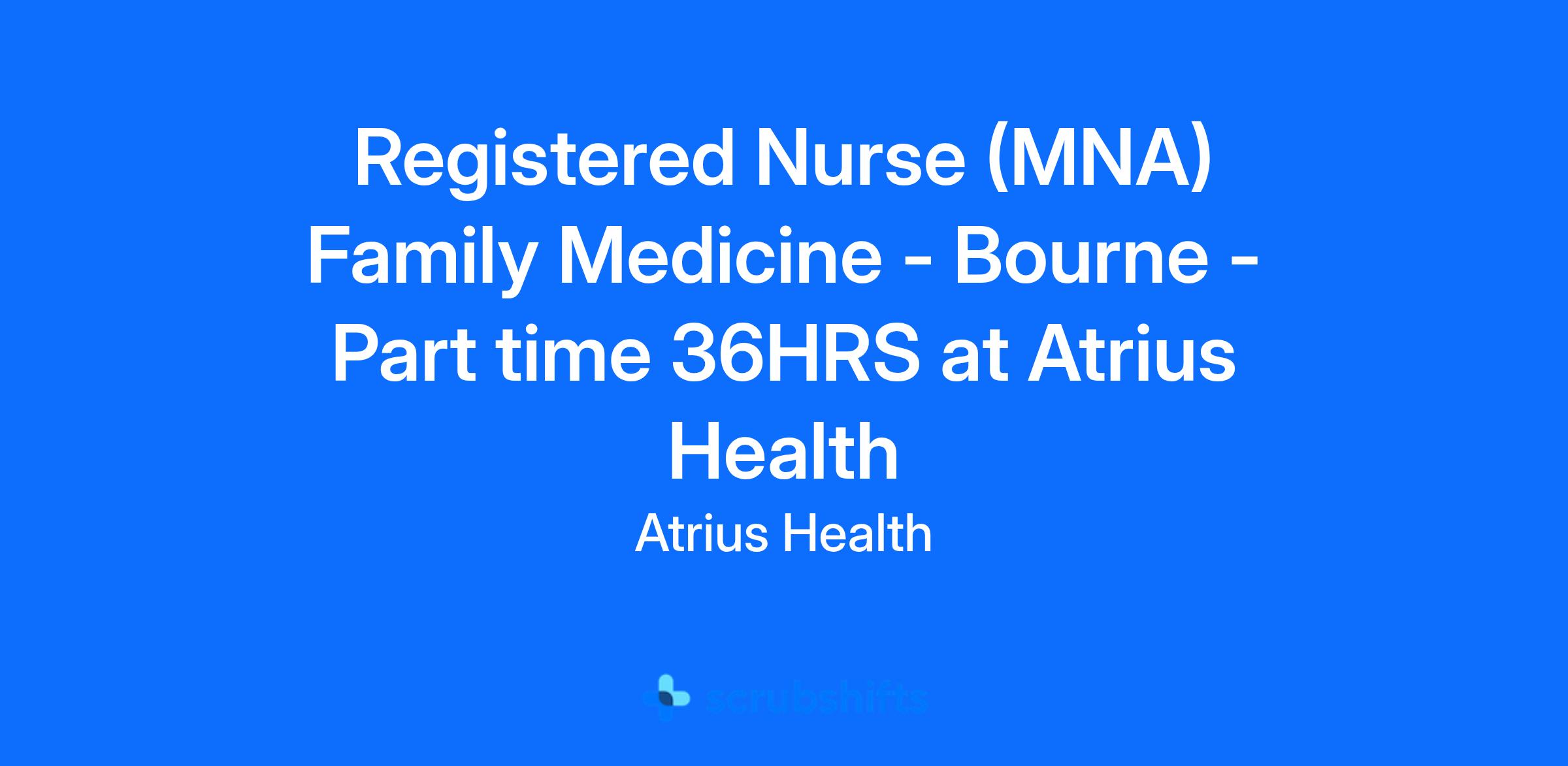 π Description: **Registered Nurse (MNA) Family Medicine \\- Bourne \\- Part time 36HRS**